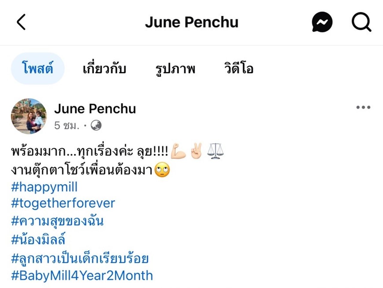 ล่าสุด จูน เพ็ญชุลี หนูแก้ว ภรรยาของ หนุ่ม กะลา ก็ได้เคลื่อนไหวผ่านทางเฟซบุ๊กส่วนตัว โพสต์ภาพคู่กับลูกสาวพร้อมทั้งเขียนแคปชั่น “พร้อมมาก…ทุกเรื่องค่ะ ลุย!!!! (อีโมจิสตรอง, ชู 2 นิ้ว, ตาชั่ง) งานตุ๊กตาโชว์เพื่อนต้องมา (อีโมจิมองบน) #happymill #togetherforever #ความสุขของฉัน #น้องมิลล์ #ลูกสาวเป็นเด็กเรียบร้อย #BabyMill4Year2Month” โดยมีเพื่อนๆ แฟนๆ ที่มาให้กำลังใจ