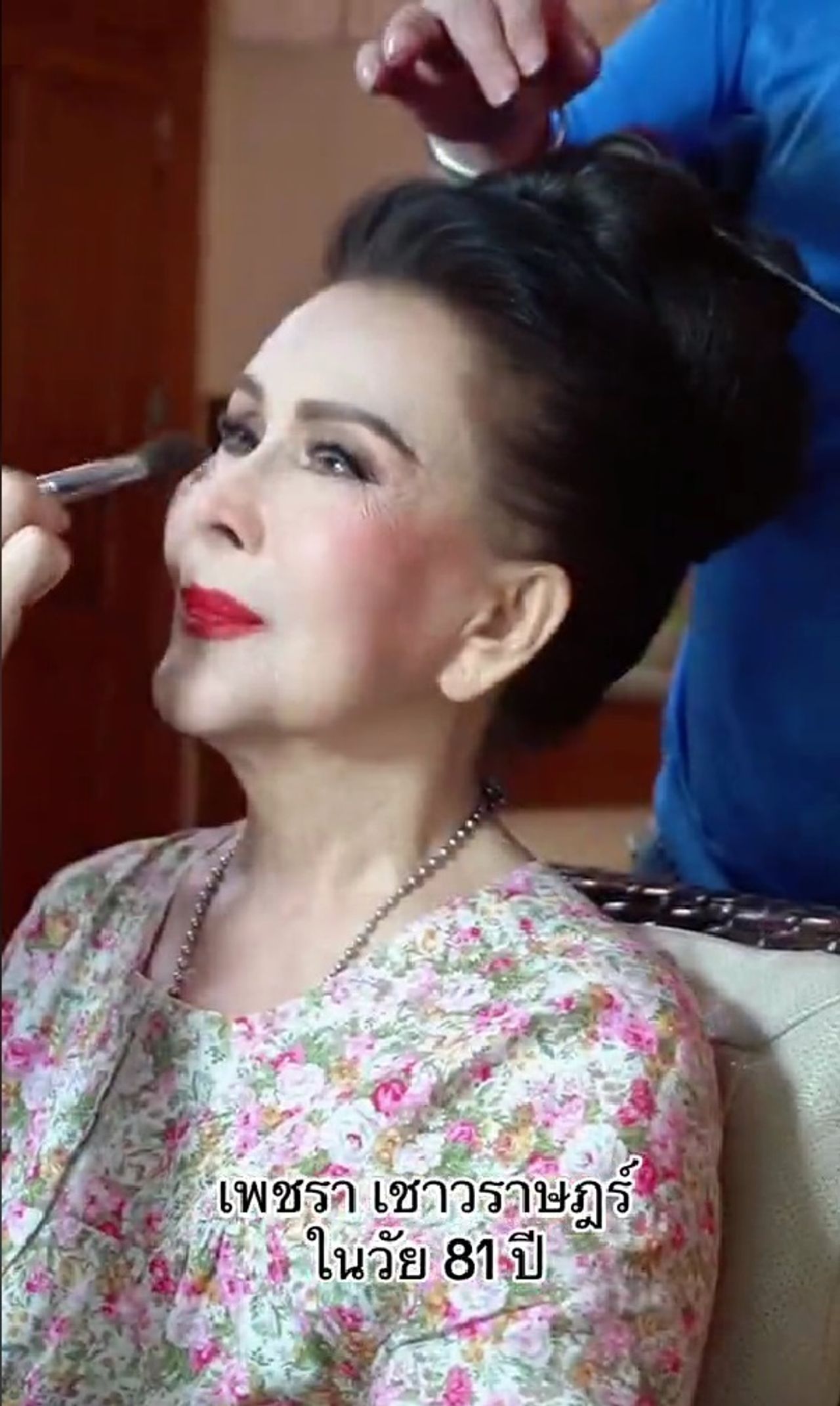 และล่าสุดมีผู้ใช้บัญชี TikTok @sith.official ซึ่งเป็นเมคอัพอาร์ติสต์ ได้โพสต์คลิปโมเมนต์ตอนที่มีโอกาสแต่งหน้าให้กับ เพชรา เชาวราษฎร์ ในวัย 81 ปี ต้องบอกเลยว่าสวยหยาดฟ้ามากจริงๆ สมกับเป็นนางเอกตลอดกาลของคนไทย