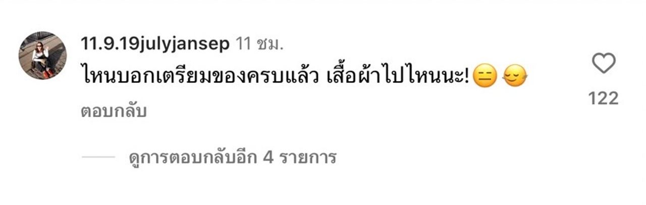 งานนี้ทำเอาแฟนๆ พร้อมใจส่งอีโมจิหัวใจและไฟลุกเต็มไอจีเลยทีเดียว ด้าน แต้ว ณฐพร ถึงกับแซวว่า “ไอนี่มันร้าย” ในขณะที่ โฟม แฟนสาวของเจมส์ ก็เข้ามาแซวว่า “ไหนบอกเตรียมของครบแล้ว เสื้อผ้าไปไหนนะ!” และใส่อีโมจิหน้านิ่งหลับตาด้วย.
