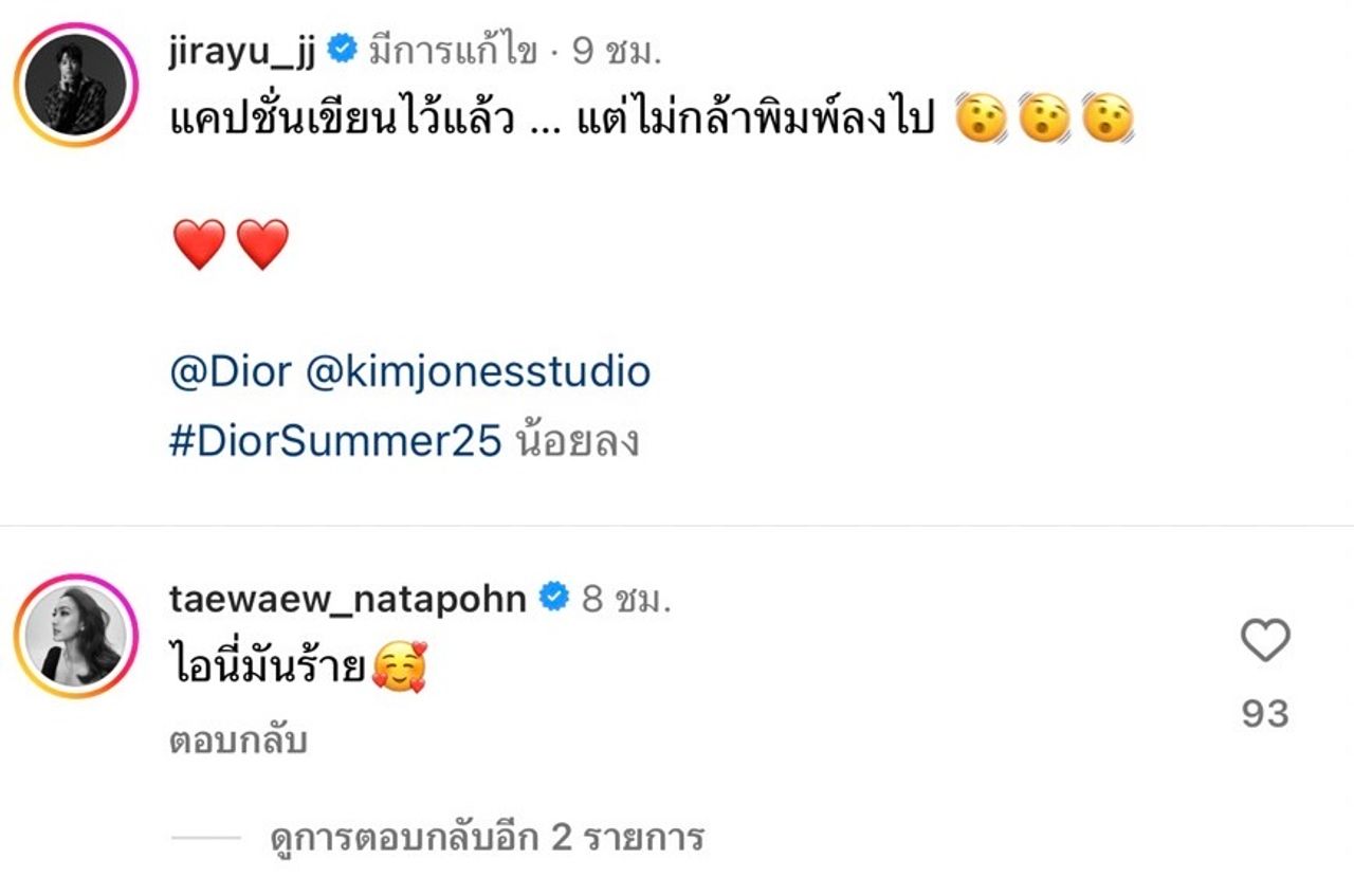 ล่าสุด เจมส์ จิรายุ ก็ได้โพสต์ภาพแฟชั่นเซตกับแบรนด์ดัง Dior ที่ทำเอาแฟนๆ ตาลุกกันเลย เพราะเป็นภาพที่ เจมส์ ทานอาหารเช้าบนเตียงแบบแซ่บๆ ด้วยการถอดเสื้อเห็นความเซ็กซี่เบาๆ พร้อมทั้งเขียนแคปชั่นที่เด็ดไม่แพ้ภาพ “แคปชั่นเขียนไว้แล้ว … แต่ไม่กล้าพิมพ์ลงไป” และใส่อีโมจิหน้าเหวอและหัวใจ
