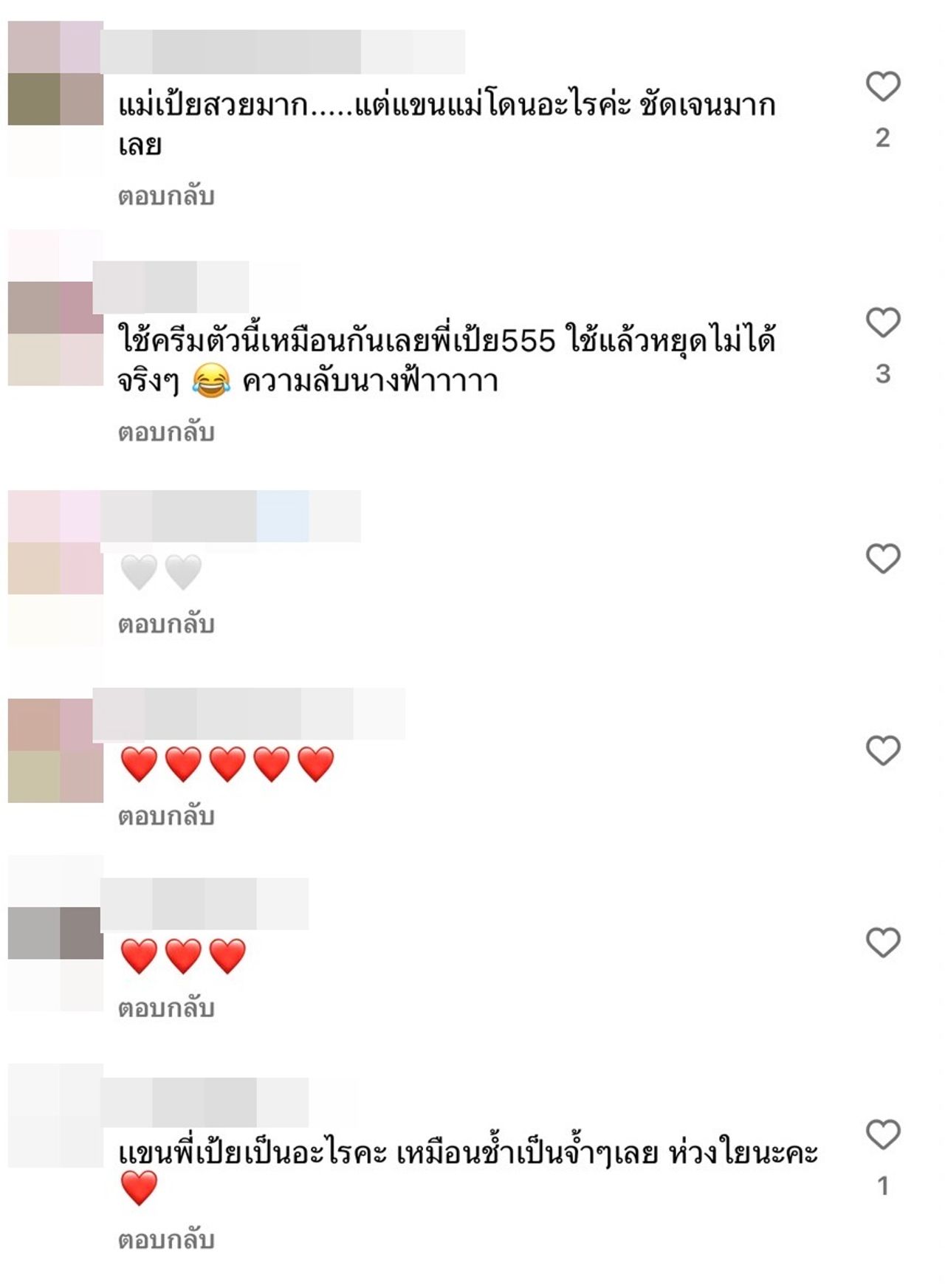 ซึ่งก็มีแฟนๆ ถามว่าแขนไปโดนอะไรมาถึงได้มีรอยแบบนั้น อาทิ แม่เป้ยสวยมาก.....แต่แขนแม่โดนอะไรคะ ชัดเจนมากเลย, เเขนพี่เป้ยเป็นอะไรคะ เหมือนช้ำเป็นจ้ำๆ เลย ห่วงใยนะคะ ฯลฯ
