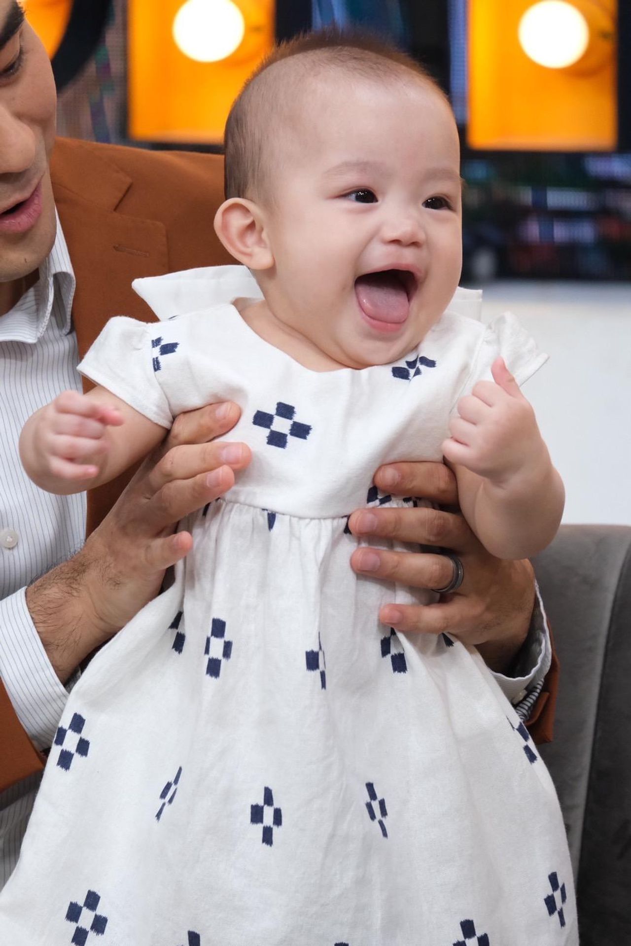 “เยี่ยมมากเลยครับ เขานั่งได้นานมาก ตอนอายุ 2 เดือนมีการเทสต์ให้เด็กลองคว่ำ ดูการยกคอ คุณหมอตกใจมาก เด็กคนอื่นอาจได้แค่ 2 วิ 10 วิ แต่เขาไม่ยอมลงเลย ก็เลยเป็นฉายาเลย น้องเต่า (หัวเราะ) ตอนนี้นั่งได้นาน หัวเราะได้เยอะขึ้น ป่วนหม่าม้า ปะป๊าได้เยอะขึ้น ตอนนี้เขาพยายามจะยืน เร็วมาก ผมก็บอกใจเย็นลูก ให้เข่ามันแข็งแรงหน่อย จะข้ามสเตป”