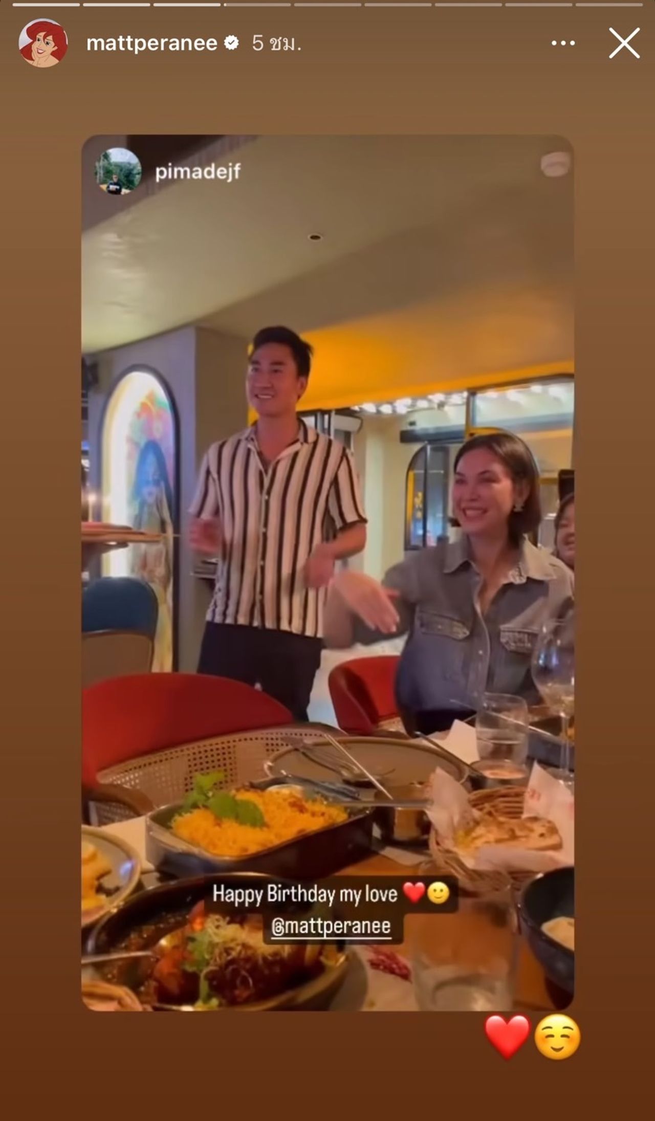ซึ่งในวันคล้ายวันเกิดปีนี้ นอกจาก แมท ภีรนีย์ จะได้ฉลองวันเกิดแบบเรียบง่ายอบอุ่นพร้อมหน้าพร้อมตาทั้งคนในครอบครัวรวมถึงคนสนิทแล้ว เฟม ก็มาร่วมปาร์ตี้วันเกิดครั้งนี้ด้วย และอยู่ข้างๆ แมท ไม่ห่าง อีกทั้งยังโพสต์คลิปบรรยากาศลงในไอจีสตอรี่ พร้อมทั้งเขียนแคปชั่นสุดหวาน “Happy Birthday my love” และแท็กไปที่ไอจีของ แมท ด้าน แมท ก็ได้รีโพสต์ และเขียนแคปชั่นเป็นอีโมจิหัวใจและหน้าเขิน