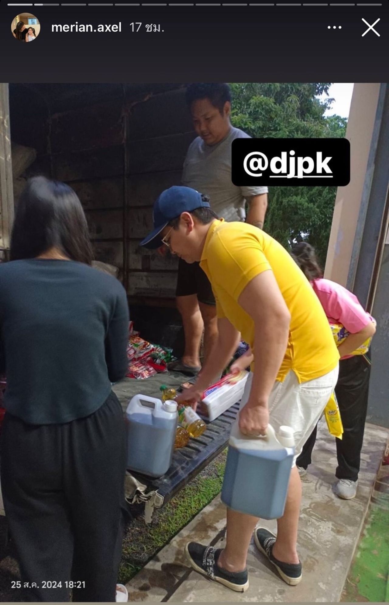 โดยในอินสตาแกรม @djpk ได้โพสต์คลิปบรรยากาศเข้าไปช่วยเหลือชาวบ้านที่ได้รับความเดือดร้อนจากภัยน้ำท่วม และเขียนข้อความว่า “แพร่ยังต้องการความช่วยเหลืออีกเยอะนะครับ ใคนช่วยได้ช่วยกันนะครับ #club8supercars” และมีแฟนๆ เข้ามาให้กำลังใจและชื่นชมในการทำความดีหลายข้อความ