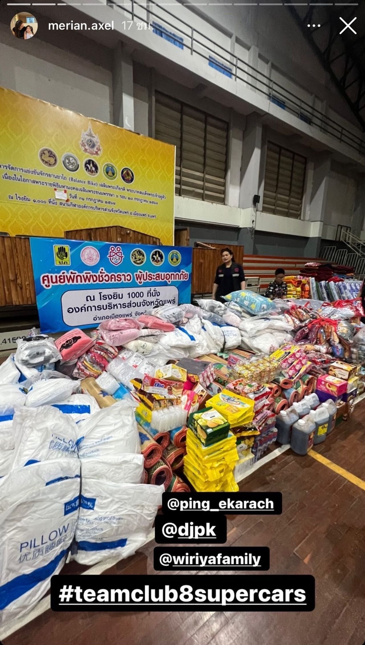 ในขณะที่ มีเรียน สุเดชา ก็ได้โพสต์ไอจีสตอรี่เป็นภาพ พีเค-มีเรียน ช่วยขนสิ่งของขึ้นรถ เพื่อเตรียมไปบริจาคให้ผู้ประสบภัย และเขียนแคปชั่นไว้ว่า “เป็นวันที่หายใจคุ้มค่ามาก เป็นกำลังใจให้ทุกคนผู้ประสบภัยค่ะ”.