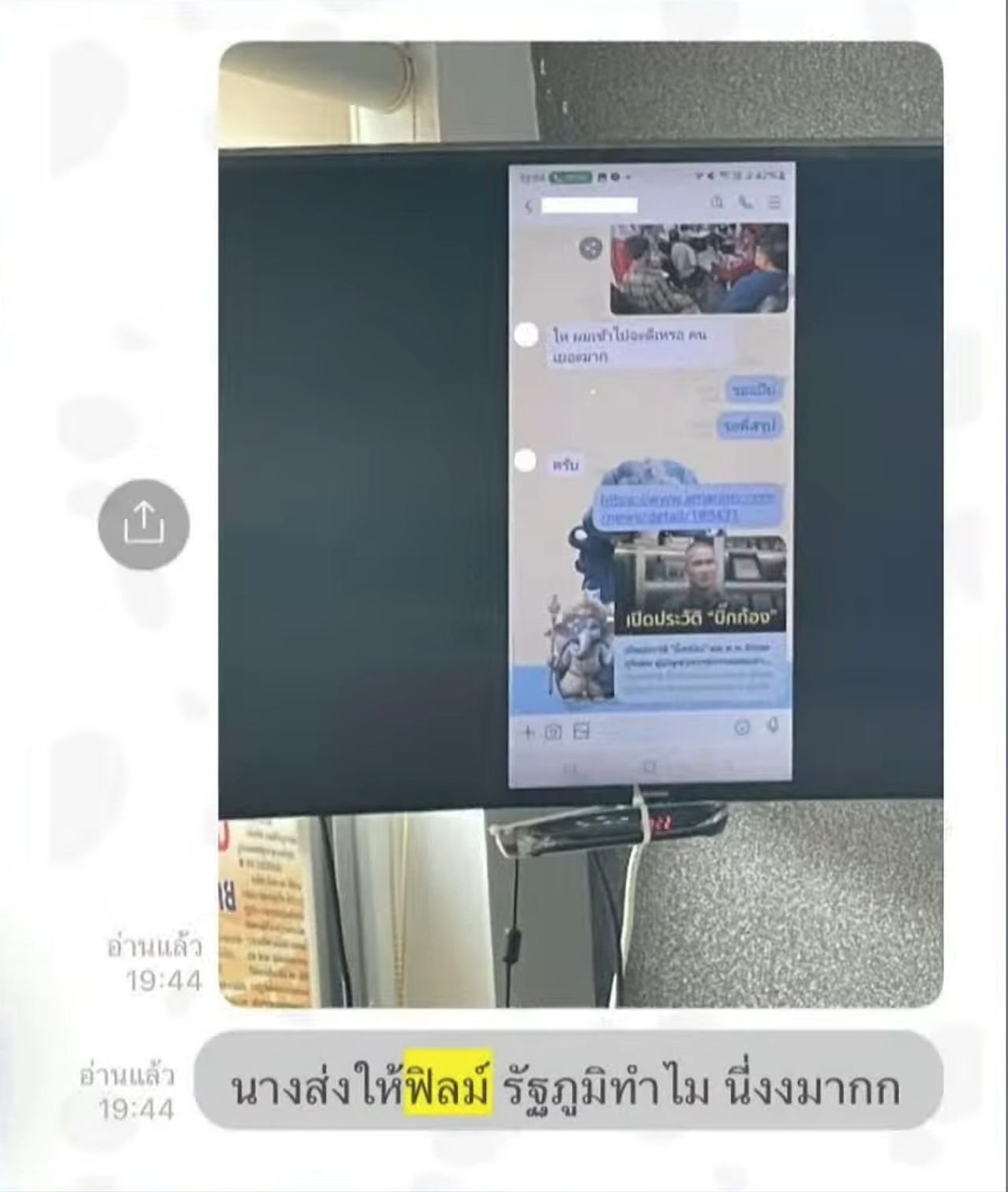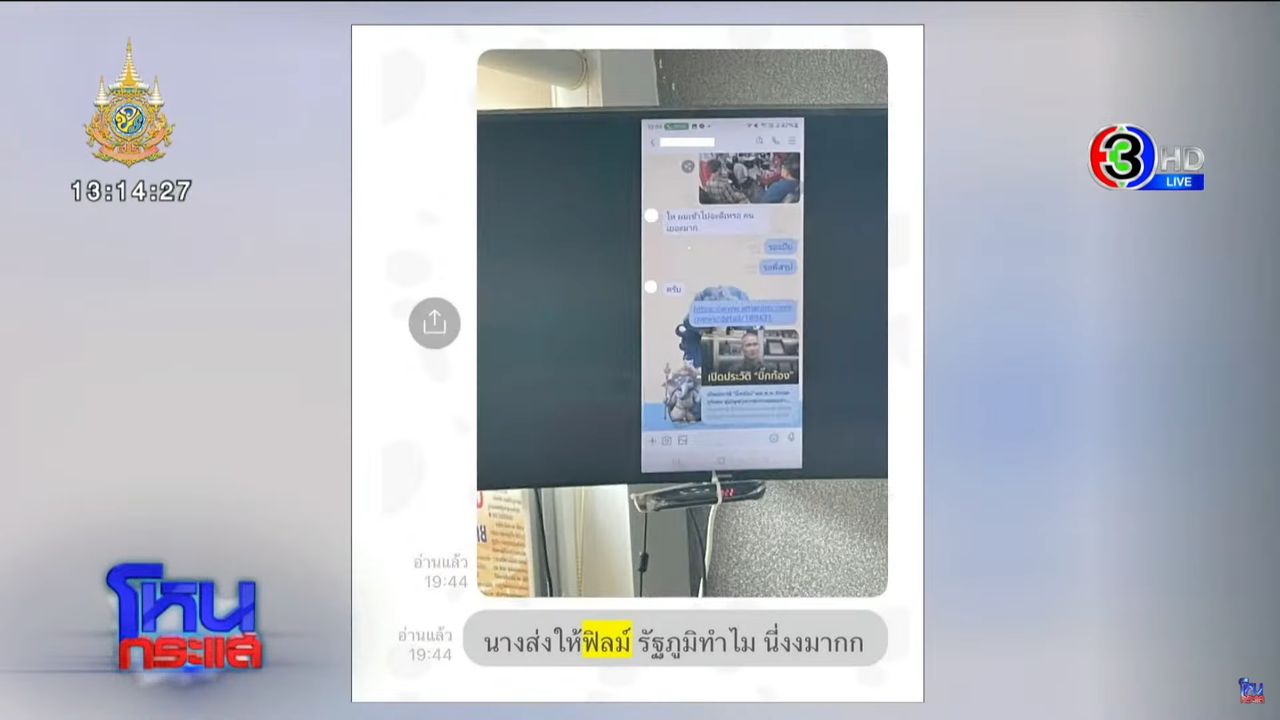 เพราะเขาส่งไลน์คุยกับคุณ แล้วเขาเอาขึ้นภาพเลยวันนั้น คุณจะแก้ตัวยังไงครับอันนี้คุณฟิล์ม คุณกฤษอนงค์ อันนี้เป็นคำถามจากผม ที่ผมเอามาขึ้น เพราะผมมีส่วนได้เสีย เพราะคุณเป็นคนทำให้ผมรู้สึกเสียหาย แล้วเสียหายไปแล้วด้วย”