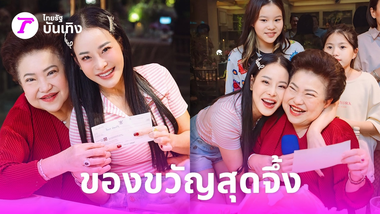และเมื่อถึงช่วงเซอร์ไพรส์ด้วยของขวัญ งานนี้สาวหนิงก็ได้มอบเช็คเงินสดให้ แต่ที่จึ้งใจสุดๆ ก็คือเป็นเช็คที่ไม่ระบุจำนวนเงิน เพราะอยากให้คุณแม่ไปกรอกตัวเลขเอง ด้าน น้องณิริน หลานสาว ก็มอบของขวัญจากแบรนด์ดัง DIOR ให้คุณยายด้วย