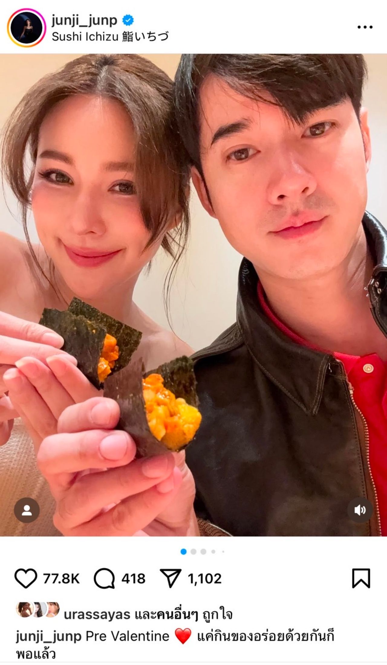 คู่ไหนจะวาเลนไทน์หวานแค่ไหนไม่รู้ รู้แต่คู่ชีจันจิ กับหนุ่มมาริโอ้ พรีวาเลนไทน์นำไปก่อนแล้วจ้า ชวนกันไปกินโอมากาเสะหวานเจี๊ยบ ถ่ายรูปคู่แบบทำคนอกหักอยู่ไม่ไหว สายตาของชีจันจิคือผู้ชนะตลอดไป