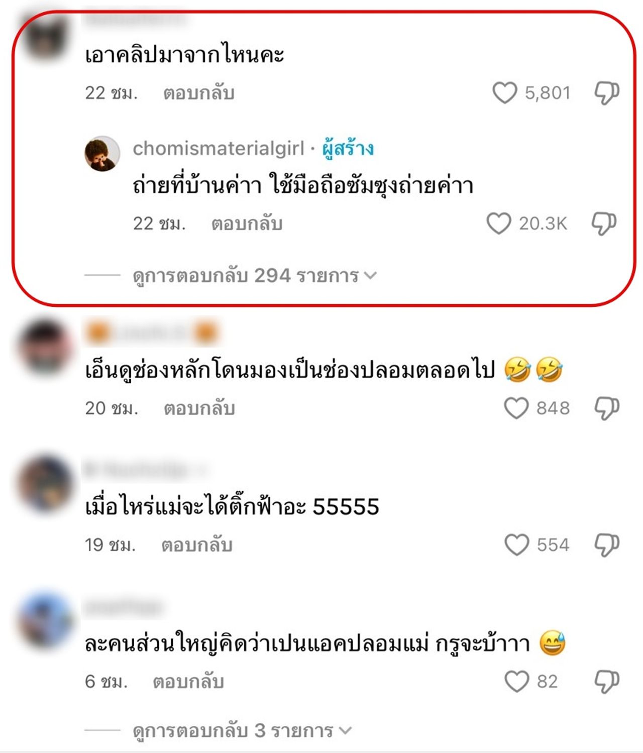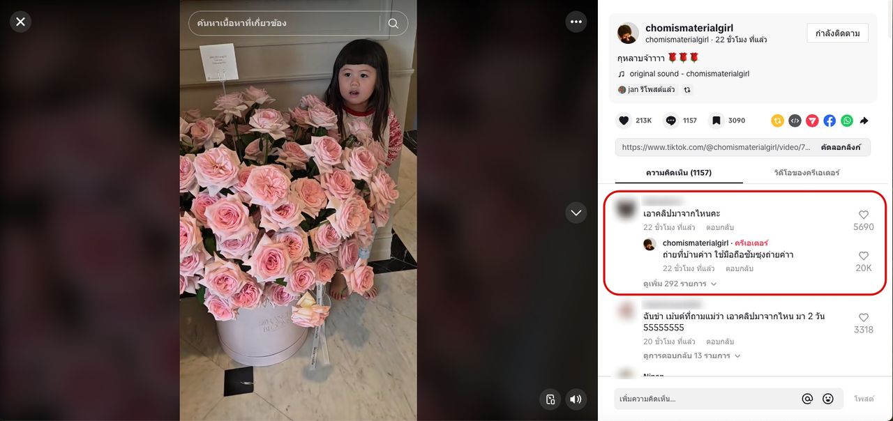 แต่แล้วก็มีชาวเน็ตรายหนึ่งที่คอมเมนต์ใต้คลิปว่า “เอาคลิปมาจากไหนคะ” งานนี้ ชมพู่ อารยา ก็เลยตอบกลับแบบชัดเจนพร้อมทั้งขายของไปเลยว่า “ถ่ายที่บ้านค่าา ใช้มือถือซัมซุงถ่ายค่าา” เห็นแล้วทั้งฮาทั้งเอ็นดูแม่ชมเลยจริงๆ