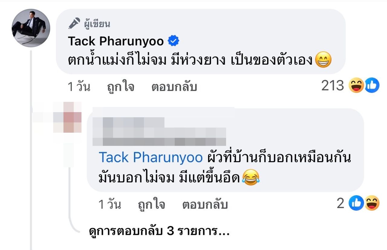 ล่าสุด แทค ภรัณยู ก็เป็นอีกคนที่ตอบชัดกับคำถามที่ว่า ถ้าลูกกับเมียตกน้ำจะเลือกช่วยใคร ซึ่งแทคได้โพสต์ลงในเฟซบุ๊กของตัวเองว่า