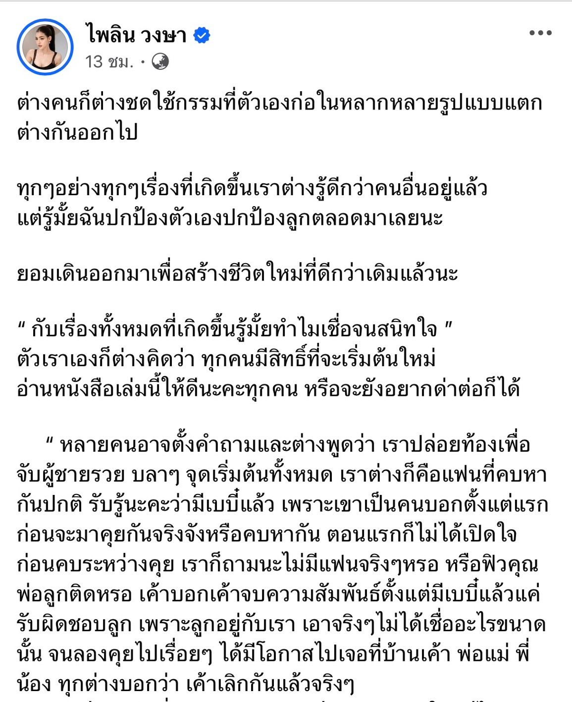 แต่ล่าสุด แบม ไพลิน ก็ได้โพสต์ร่ายยาวถึงเรื่องราวความจริงที่เกิดขึ้น ตั้งแต่เริ่มคบกับแฟนหนุ่มจนวันที่สิ้นสุดสถานะสามีภรรยา เพราะถูกอีกฝ่ายนอกใจนอกกายว่า