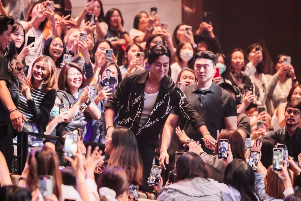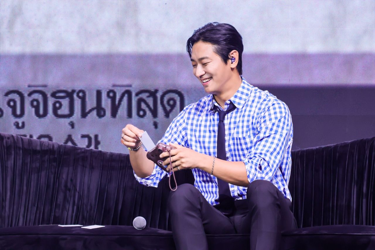 แต่ที่ทำเอาแฟนๆ กรี๊ดจนแทบเจ็บคอคงหนีไม่พ้นอาการเขินของโอปป้าคนเท่ ที่แอบออกตัวว่าเป็นสเปกของทุกคนเพราะบทบาทในซีรีส์ แต่กลับโดนแฟนคลับตะโกนแซวกลับว่าเพราะความหล่อนี่แหละใช่เลย!! เจ้าตัวถึงกับยิ้มน้อยยิ้มใหญ่แล้วเสิร์ฟเซอร์ไพรส์แรกต่อทันที ด้วยการแจกภาพโพลารอยด์ที่ถ่ายเองบนเวทีพร้อมลีลาเซลฟี่แบบไม่ห่วงหล่อให้กับแฟนคลับผู้โชคดี