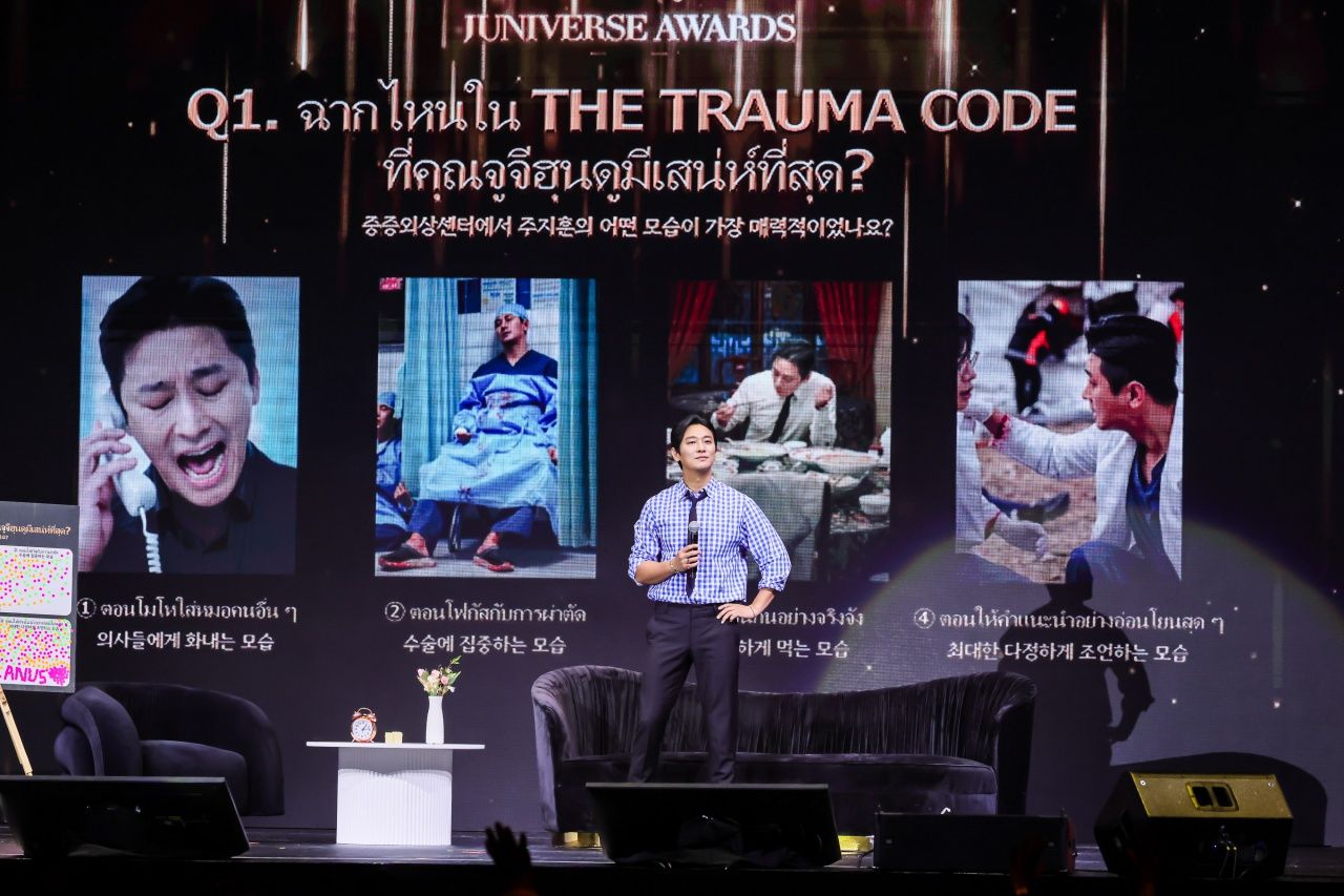 งานนี้แฟนๆ ยิ่งหลงความขี้เล่นจนใจละลาย กรี๊ดกันไม่มีหยุด ไม่มีคำว่าเหนื่อย ความสนุกยังต่อเนื่องแบบยิงยาวกับช่วง JUNIVERSE AWARD ที่เปิดให้แฟนๆ ร่วมโหวตเรื่องราวเกี่ยวกับจูจีฮุน พาร์ทนี้ทั้งสนุกทั้งเรียกเสียงหัวเราะได้แบบสุดๆ ต่อด้วยช่วงตอบคำถามที่แฟนคลับในงานเขียนถึงจูจีฮุน บอกเลยว่าแต่ละคำถาม แต่ละคำขอ คอมพลีทกันแบบจัดเต็ม โอปป้าคนดีไม่ทำให้ผิดหวัง ขออะไรก็ให้หมด แจกไม่กั๊กเลยทีเดียว