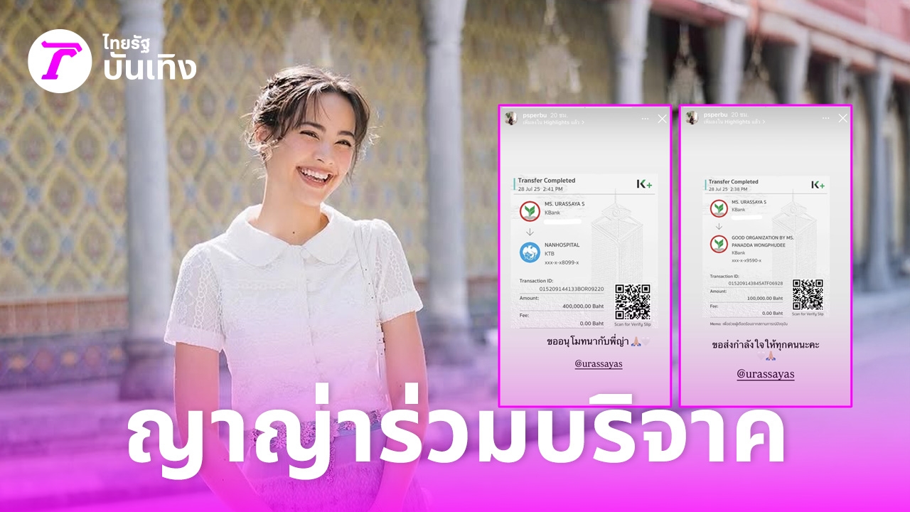 ล่าสุด ญาญ่า อุรัสยา เสปอร์บันด์ ได้บริจาคเงินช่วยเหลือโรงพยาบาลน่าน เป็นเงิน 4 แสน รวมทั้งบริจาคอีก 1 แสนผ่านมูลนิธิองค์กรทำดี ซึ่งคุณแม่ปลาได้โพสต์ภาพสลิปโอนเงินและมีข้อความเขียนเอาไว้ว่า “ขอส่งกำลังใจให้ทุกคนนะคะ” และ “ขออนุโมทนากับพี่ญ่า”
