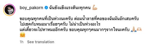ทำเอาหลายๆ คนเป็นห่วงและส่งความห่วงใยและอวยพรให้บอยหายในเร็ววัน
