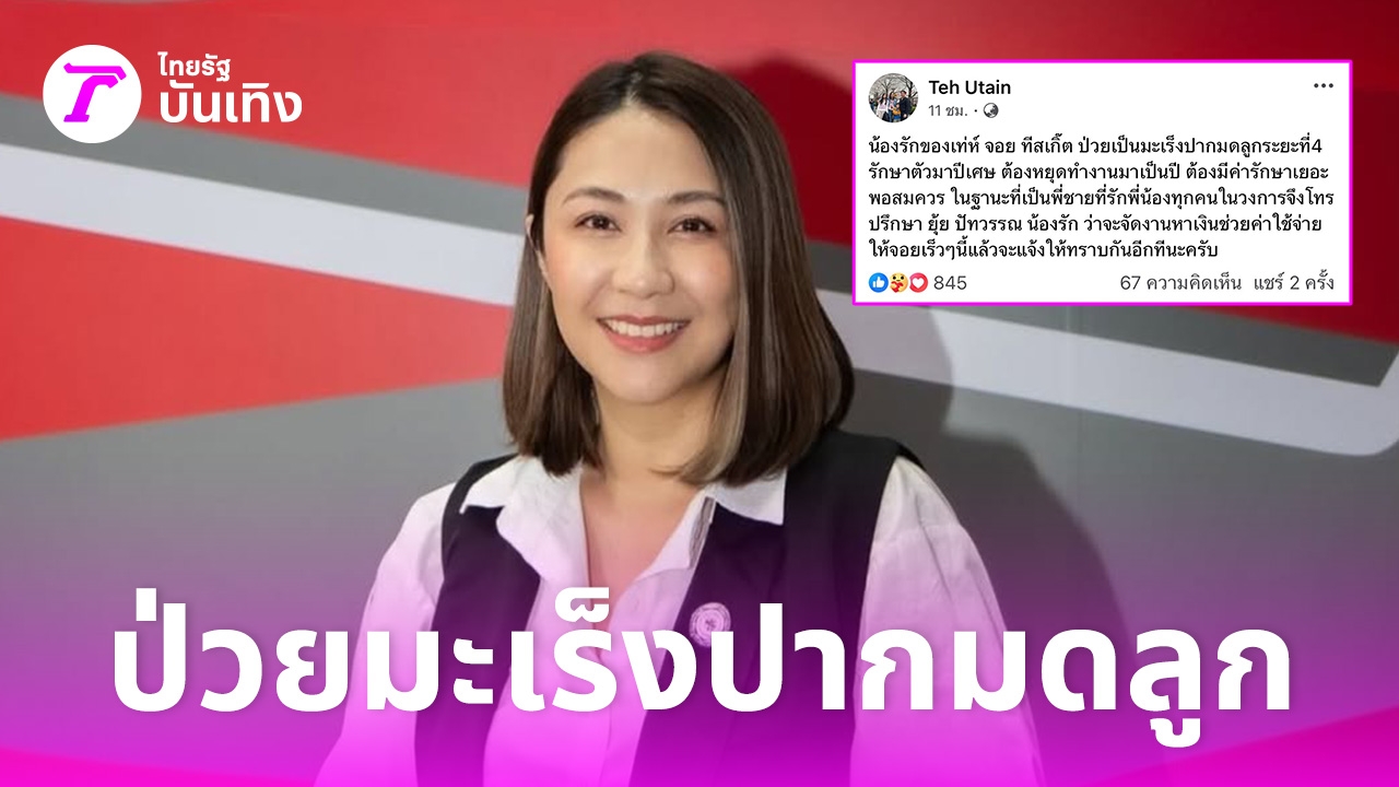 "น้องรักของเท่ห์ จอย ทีสเกิร์ต ป่วยเป็นมะเร็งปากมดลูกระยะที่ 4 รักษาตัวมาปีเศษ ต้องหยุดทำงานมาเป็นปี ต้องมีค่ารักษาเยอะพอสมควร