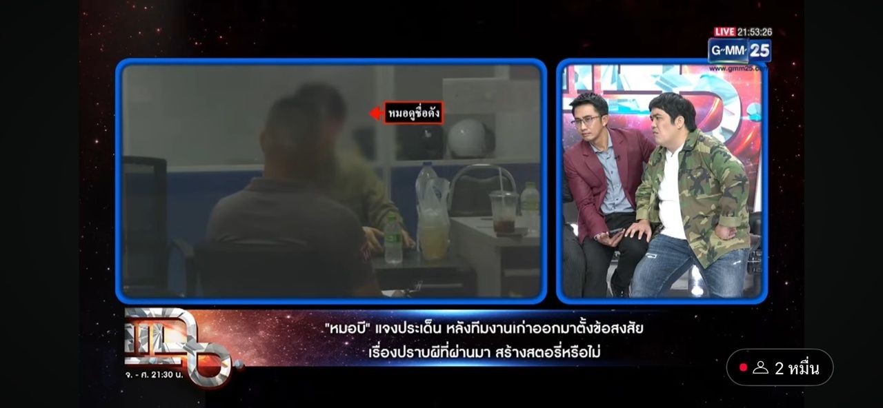 - จากนั้น หมอบี ได้โฟนอินเข้ารายการ เผยว่า ตอนนี้ยังอยู่ที่กองปราบ