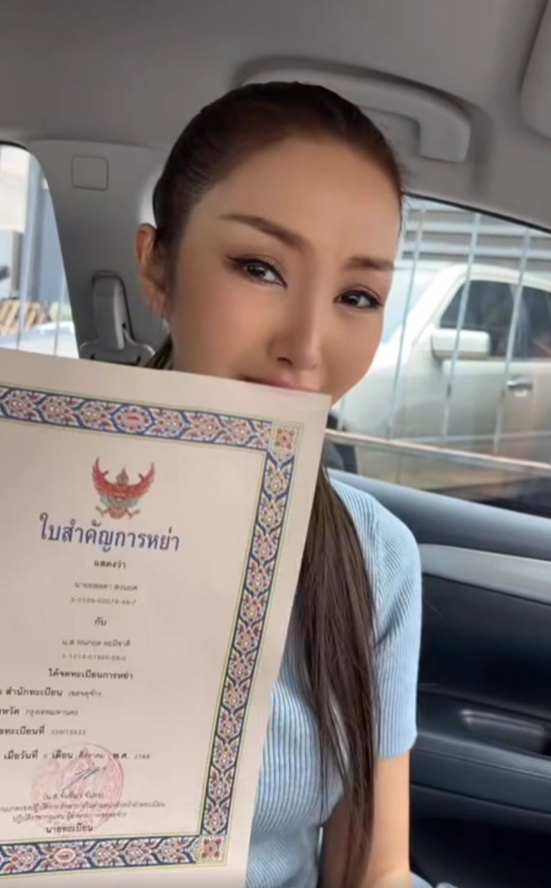 โดยในคลิปดังกล่าว หลังจากที่ทั้งคู่ได้จรดปากกาเซ็นทะเบียนหย่าแล้ว ก็ได้กอดลากันครั้งสุดท้าย ปิดฉากความสัมพันธ์อย่างเป็นทางการ