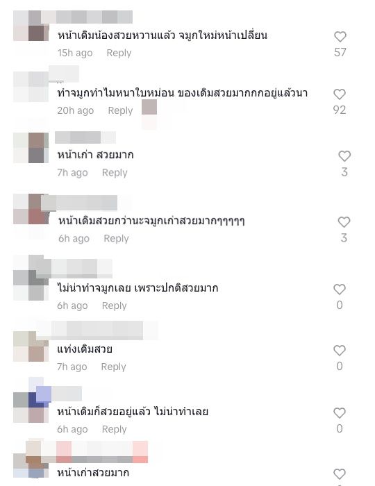 แต่ก็มีหลายคนที่มองว่า จมูกใหม่ของใบหม่อนนั้นสวย ต่างเข้ามาคอมเมนต์ให้กำลังใจคุณแม่คนสวยว่า เช่น ใบหม่อนจมูกสวยมากก หน้าสวยคมกว่าเดิมเลย, หน้าเก่าก็น่ารัก หน้าใหม่ก็น่ารักค่ะดูลูกครึ่ง ทำไมคนชอบติ งง, เปลี่ยนมาก คนละคน เก่าก็สวย ใหม่ก็ดูดี, จมูกสวยมากกก