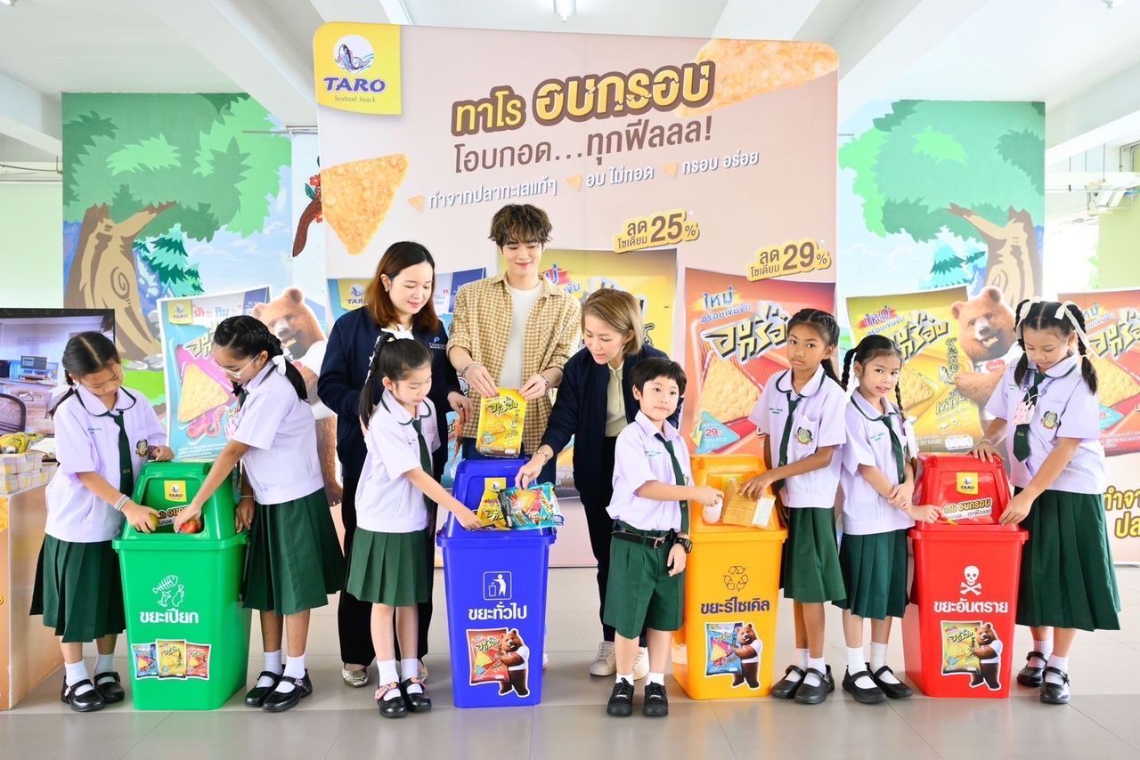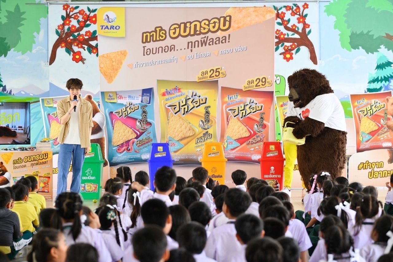 นำทีมโดย บอม-ธนวัฒน์ หิรัญธรารัศมิ์ ควง “พี่หมีคริสปี้” หมีกริซลีที่ช่างเลือกชอบกินปลาทะเลที่อร่อยและมีประโยชน์ ร่วมสร้างความสุขให้กับเด็กๆ โดยมี รุ่งนภา ดีพยุงศักดิ์ รองกรรมการผู้จัดการงานพัฒนาธุรกิจและการตลาด บริษัท พีเอ็ม เอสอี จำกัด บริษัทในเครือ บริษัทพรีเมียร์ มาร์เก็ตติ้ง จำกัด (มหาชน) มอบถังขยะแยกประเภทให้กับตัวแทนจากโรงเรียนพร้อม นำทาโรทั้ง 2 รสชาติที่ออกใหม่มาให้น้องๆ