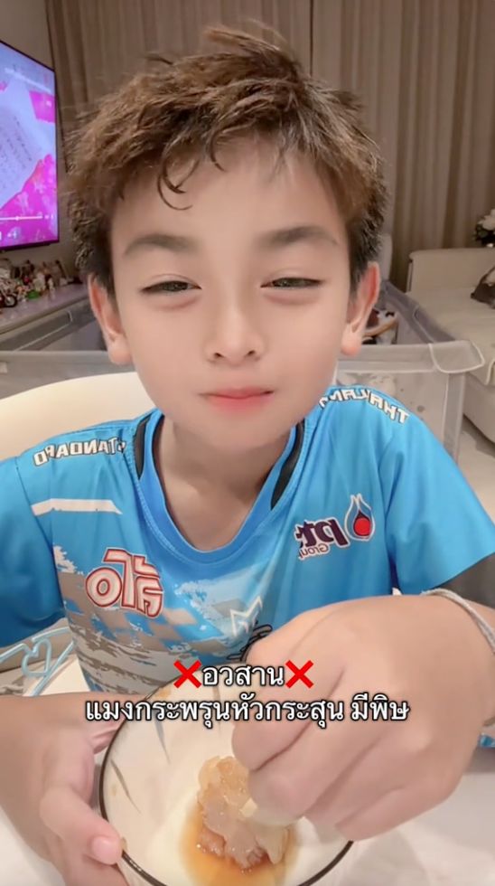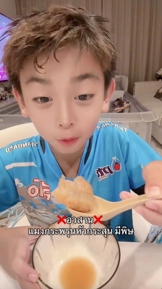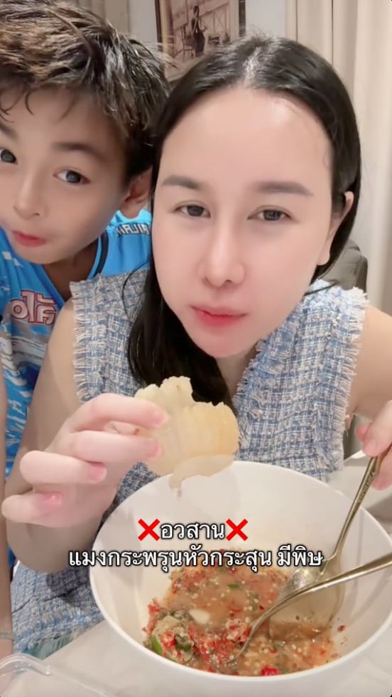 พร้อมเขียนข้อความว่า "แมงกะพรุนหัวกระสุน ทำพิษคลื่นไส้ ปวดหัว แน่นหน้าอก" และยังบอกต่อว่า "มีพิษต้องล่างพิษให้หมด ใครไม่เคยกิน รอดูผล 30 นาที หากแพ้จะมีอาการคลื่นไส้ ท้องเสีย มึนหัว แน่นอก"