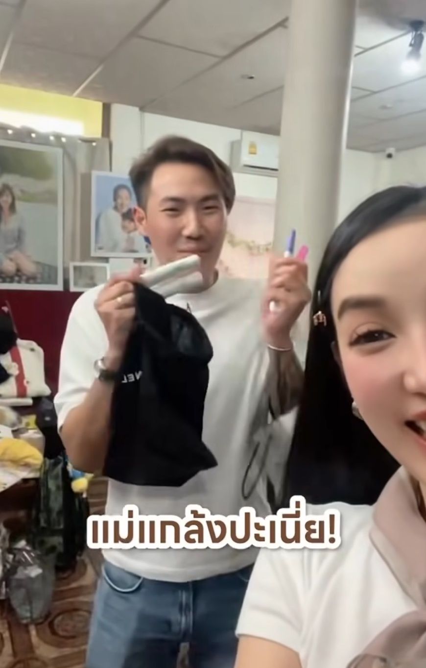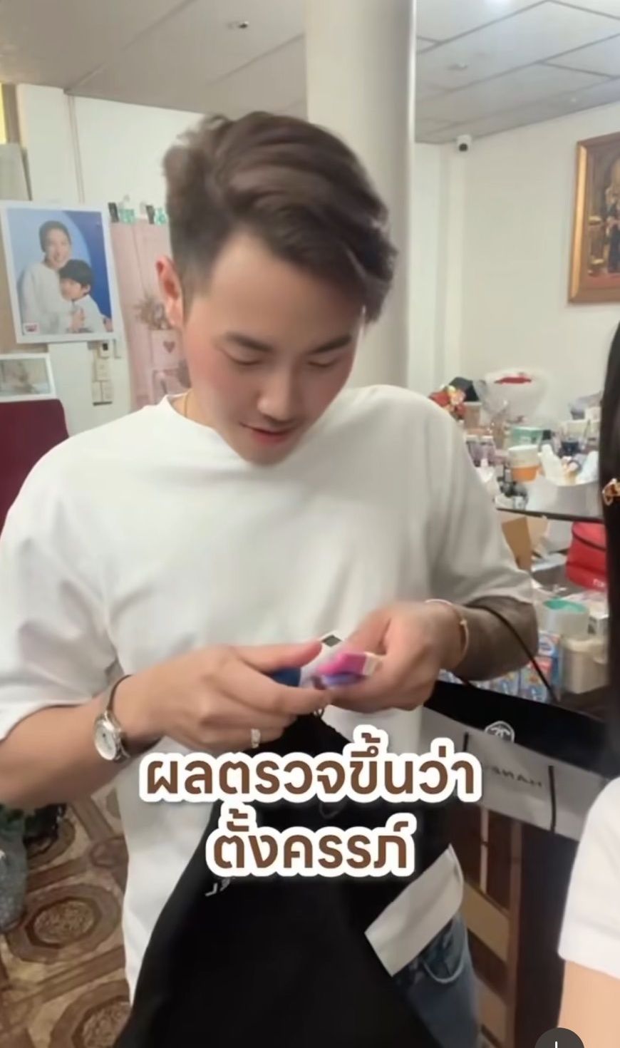 ทำเอาทั้งคู่ดีใจมากที่กำลังจะมีเบบี๋แล้ว และ พ่อพี ยังได้แซวภรรยาว่า ก่อนหน้านี้เธอแกล้งทำเป็นบอกว่าประจำเดือนมาอยู่เลย