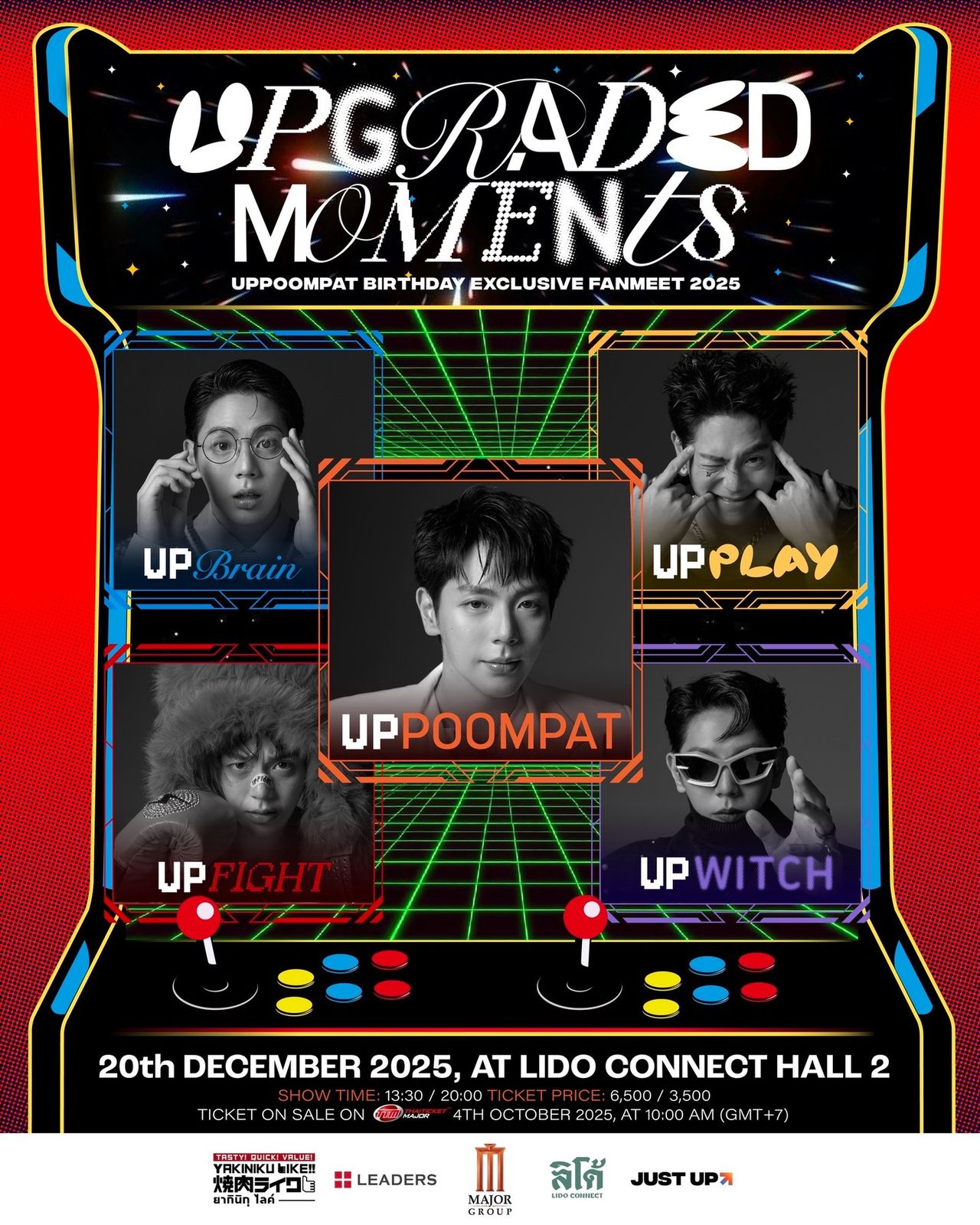 กดปุ่มออกสตาร์ทแล้วเตรียมตัวไปสนุกเอ็นจอยกันแบบอันลิมิต เมื่อศิลปินหนุ่มหล่อ “Uppoompat” (อัพ ภูมิพัฒน์ เอี่ยมสำอาง) จากค่าย JustUp ขอเสิร์ฟความพิเศษชวนแฟนๆ มาร่วมฉลองครบรอบวันเกิดพร้อมสร้างเมจิกโมเมนต์ดีๆ ไปด้วยกันในงาน “Uppoompat Birthday Exclusive Fanmeet 2025 : Upgraded Moment” อัพเกรดความฟันแอนด์ฟินไปกับโชว์สุดเอ็กคลูซีฟที่เรียกว่าฟูลฟีลทุกโมเมนต์ กับการเรียงร้อยทุกห้วงเวลาของความบันเทิงผ่านธีมเกม Arcade ที่ทุกคนจะได้ย้อนวันวานไปสู่ยุคแห่งความสนุกสุดคลาสสิกไปพร้อมกับการชาร์จแบตเตอรี่หัวใจให้เต็มพลัง ท่ามกลางบรรยากาศของความสุขที่จะตกอารมณ์แฟนๆ ให้ได้ฟินเหนือคำบรรยาย ในวันเสาร์ที่ 20 ธันวาคม 2568 ณ Lido Connect Hall 2 กับ 2 รอบการแสดง เวลา 13.30 น. และ 20.00 น.