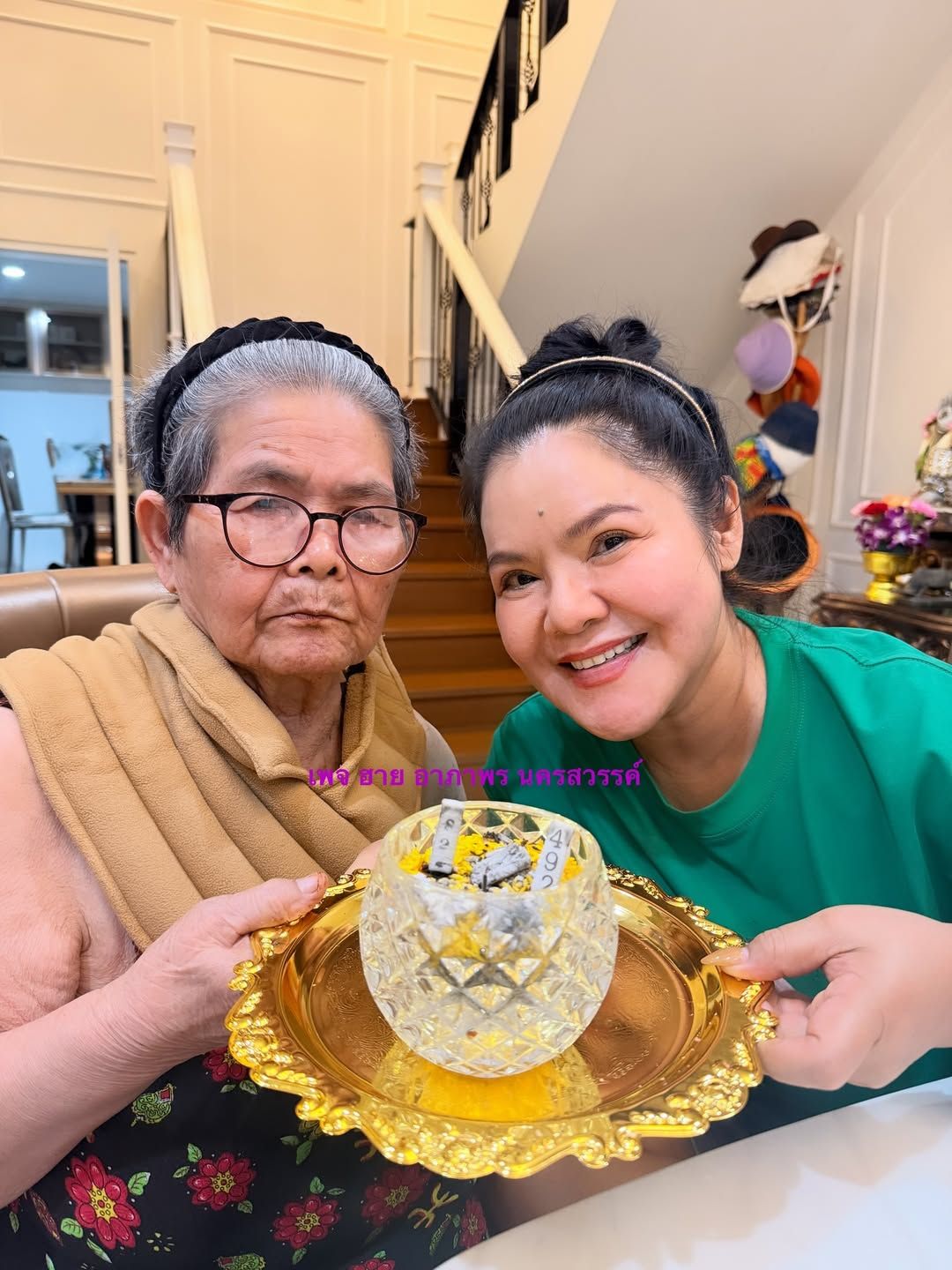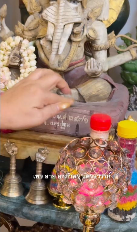 หลังจากที่จุดธูปเสร็จ ก็ได้โชว์เลขจากธูปคือ 492, 82 และบอกบ้านเลขที่ตัวเองคือ 126/6 126/7 ส่วนเลขที่ฐานพระพิฆเนศคือ 2471 พร้อมกับแคปชันกำกับว่า "พรุ่งนี้รวยค่ะทุกคน จุดธูปกับแม่เล้ง เอาแต่พอดีนะ อย่าเล่นเกินตัวนะทุกคน"