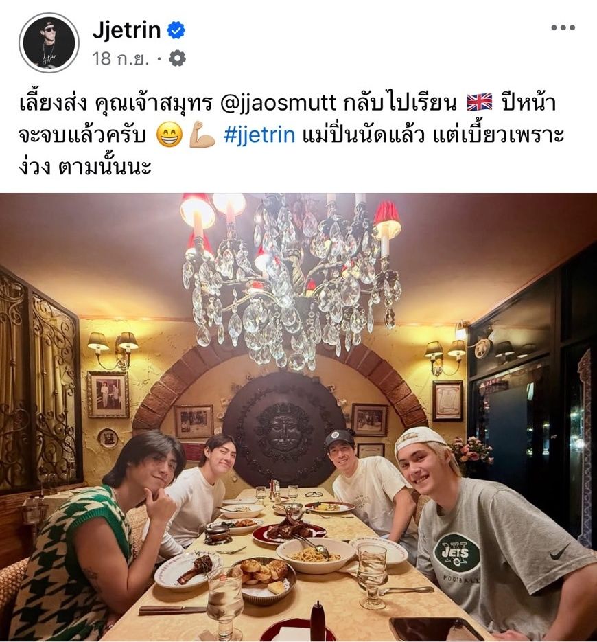 "เลี้ยงส่ง คุณเจ้าสมุทร @jjaosmutt กลับไปเรียนที่อังกฤษ ปีหน้าจะจบแล้วครับ #jjetrin แม่ปิ่นนัดแล้ว แต่เบี้ยวเพราะง่วง ตามนั้นนะ"