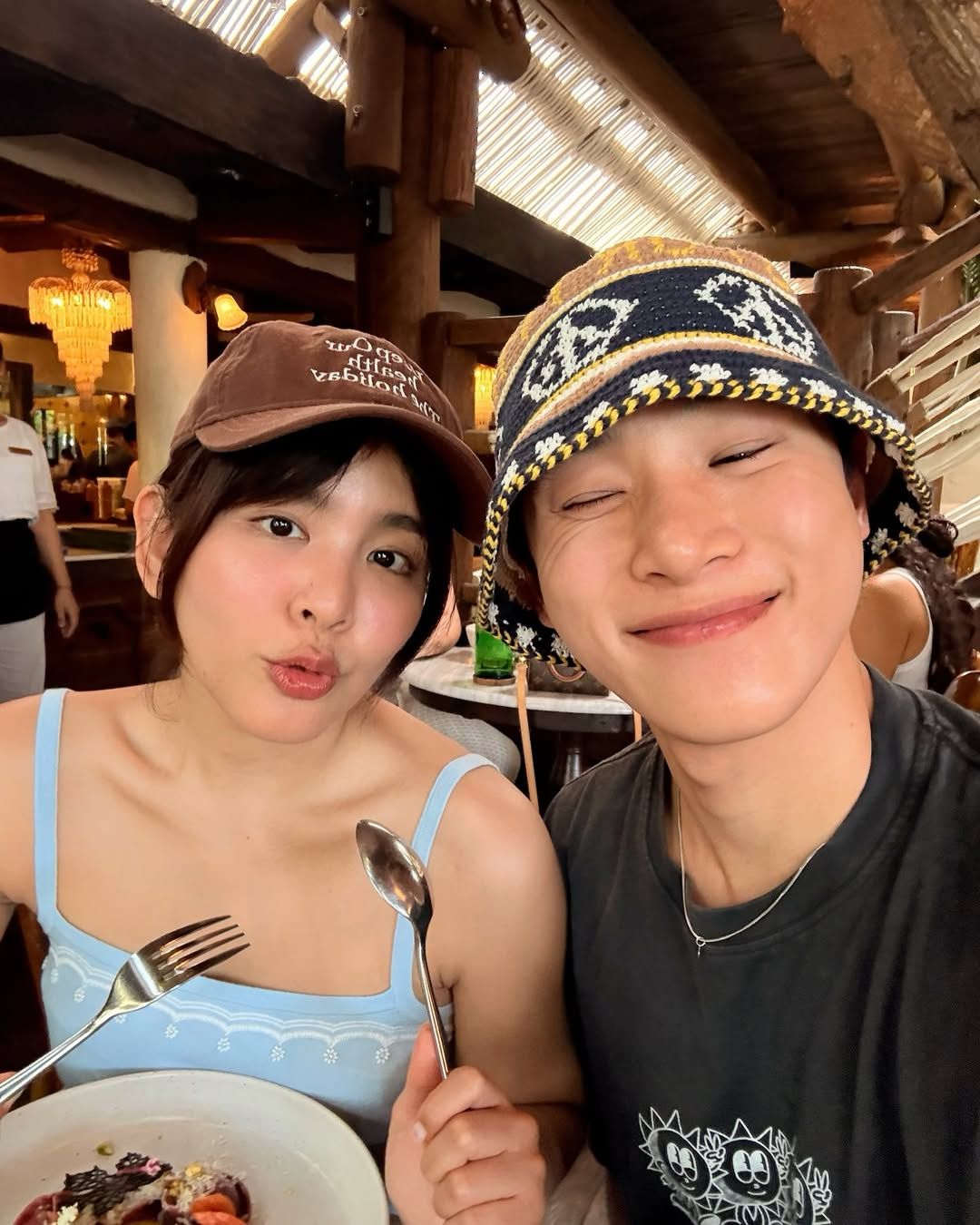 เรื่องแต่งงาน จริง ๆ ผู้ใหญ่ก็มีพูด ๆ ค่ะ แต่ด้วยความที่เราสองคนยังเป็นเด็กในยุคนี้ ก็ยังอยากทำงานอยู่ มีหลายอย่างต้องตัดสินใจ แล้วเราก็มีหลายสายงาน ทั้งอินฟลูเอนเซอร์การท่องเที่ยว ก็เลยยังไม่ค่อยได้คุยกันจริงจังเรื่องนี้ แต่เขาก็มีพูดบ้างค่ะ ทางคุณแม่ก็มีถามค่ะ ใครจำได้บ้างว่าคุณแม่บอกเลยว่า “ไม่เอาผู้ชายคนนี้” คุณแม่หวงมากค่ะ ใช่ค่ะ แต่ตอนนี้กลายเป็นถามว่า เมื่อไหร่จะแต่งสักที