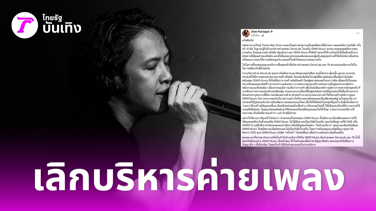 “ในโอกาสนี้ผมขออนุญาตแจ้งการสิ้นสุดหน้าที่บริหารค่ายเพลง GeneLab และ 19 ของผมและทีมงานไปในโอกาสเดียวกันนี้ด้วยครับ”