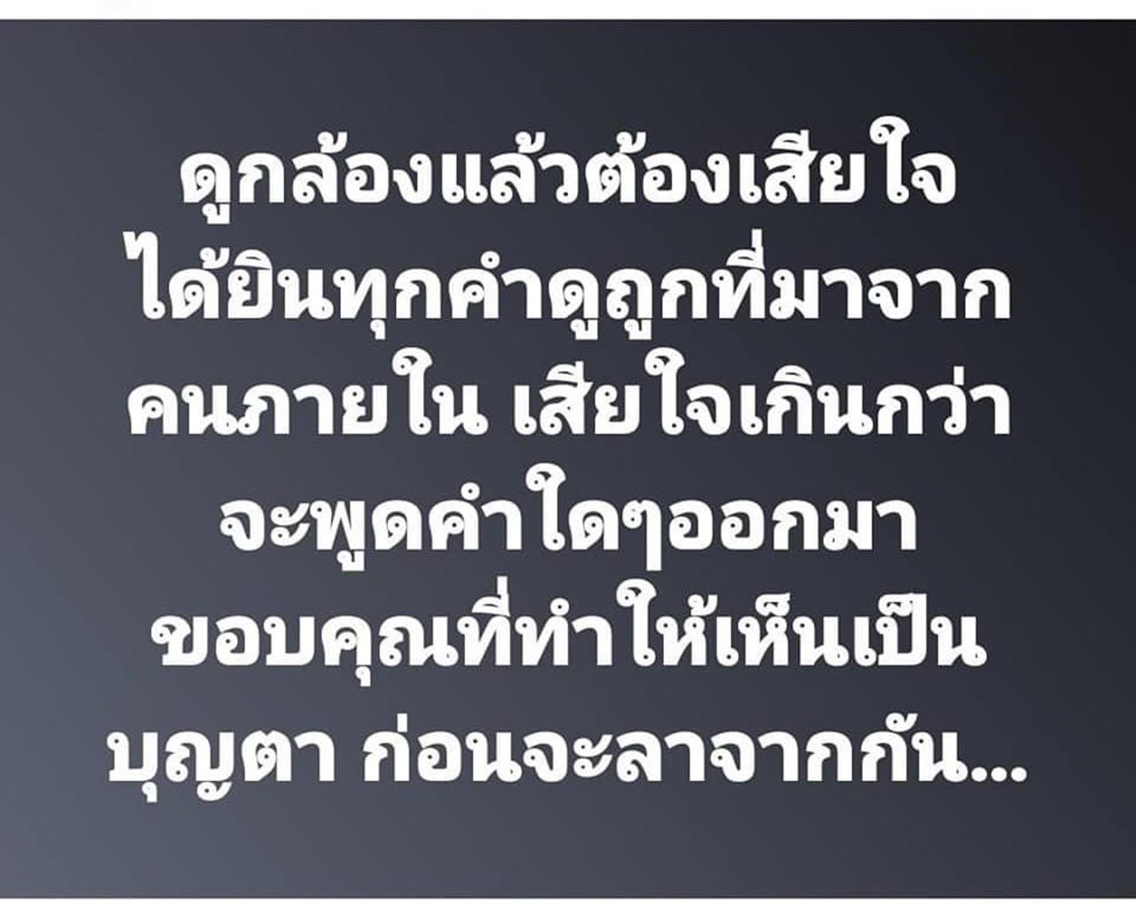 จากนั้นก็ได้โพสต์อีกว่า "ดูกล้องแล้วต้องเสียใจ ได้ยินทุกคำดูถูกที่มาจากคนภายใน เสียใจเกินกว่าจะพูดคำใดๆ ออกมา ขอบคุณที่ทำให้เห็นเป็นบุญตา ก่อนจะลาจากกัน…"
