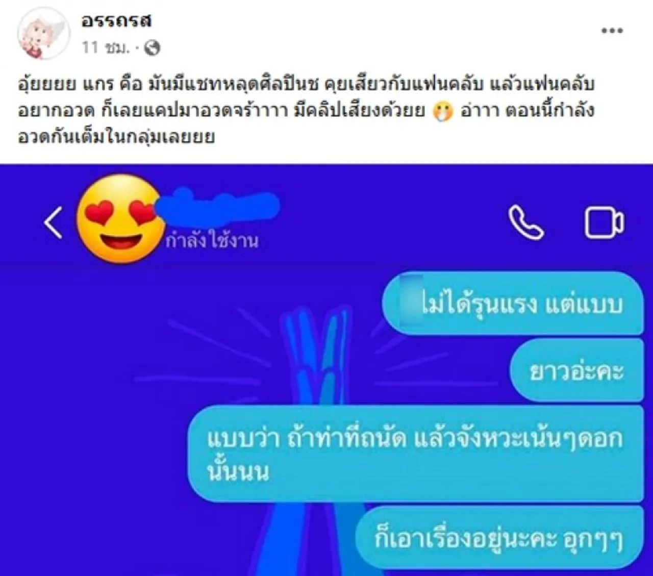 กลายเป็นประเด็นร้อนให้ขาเผือกมุงรัวๆ เมื่อเพจบันเทิง อรรถรส โพสต์ภาพอ้างเป็นแชตหลุดของนักร้องเสียงนุ่ม แอบคุยเสียวกับแฟนคลับสาวคนหนึ่ง พร้อมทั้งเขียนข้อความว่า “อุ้ยยยย แกร คือ มันมีแชตหลุดศิลปินช คุยเสียวกับแฟนคลับ แล้วแฟนคลับอยากอวด ก็เลยแคปมาอวดจร้าาาา มีคลิปเสียงด้วยย อ่าาา ตอนนี้กำลังอวดกันเต็มในกลุ่มเลยยย”