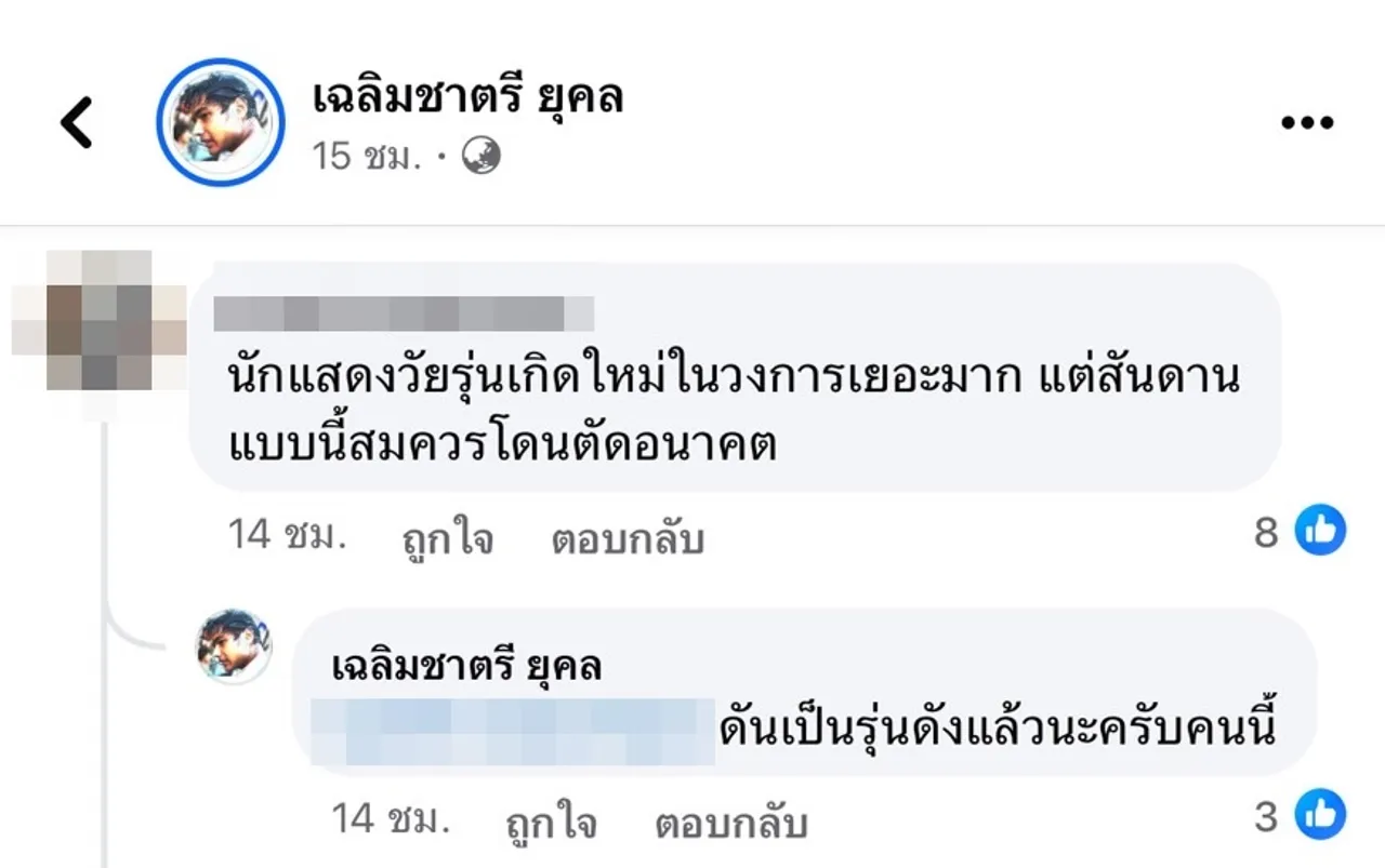 นอกจากนี้ก็มีชาวเน็ตรายหนึ่งที่เข้ามาแสดงความคิดเห็นว่า “นักแสดงวัยรุ่นเกิดใหม่ในวงการเยอะมาก แต่สันดานแบบนี้สมควรโดนตัดอนาคต” ซึ่ง คุณชายอดัม ตอบกลับว่า “ดันเป็นรุ่นดังแล้วนะครับคนนี้”.