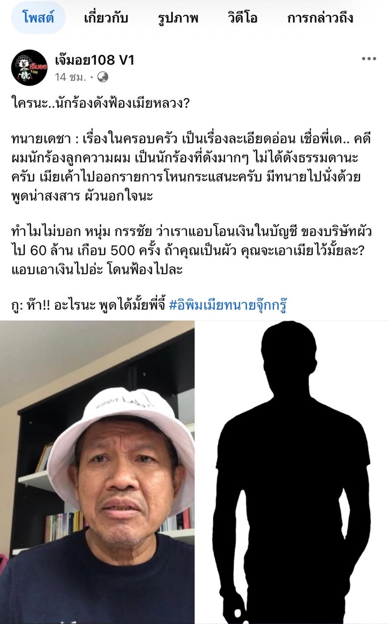 พร้อมทั้งเขียนข้อความว่า “ใครนะ..นักร้องดังฟ้องเมียหลวง?