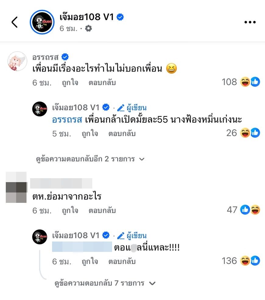 งานนี้นอกจากจะมีชาวเน็ตเข้ามาเดาชื่อดารารายนี้แล้ว เมื่อมีคนถามว่า ตห. ย่อมาจากอะไร เพจเจ๊มอยก็ตอบกลับทันทีว่า “ตอแxลนี่แหละ!!!!”