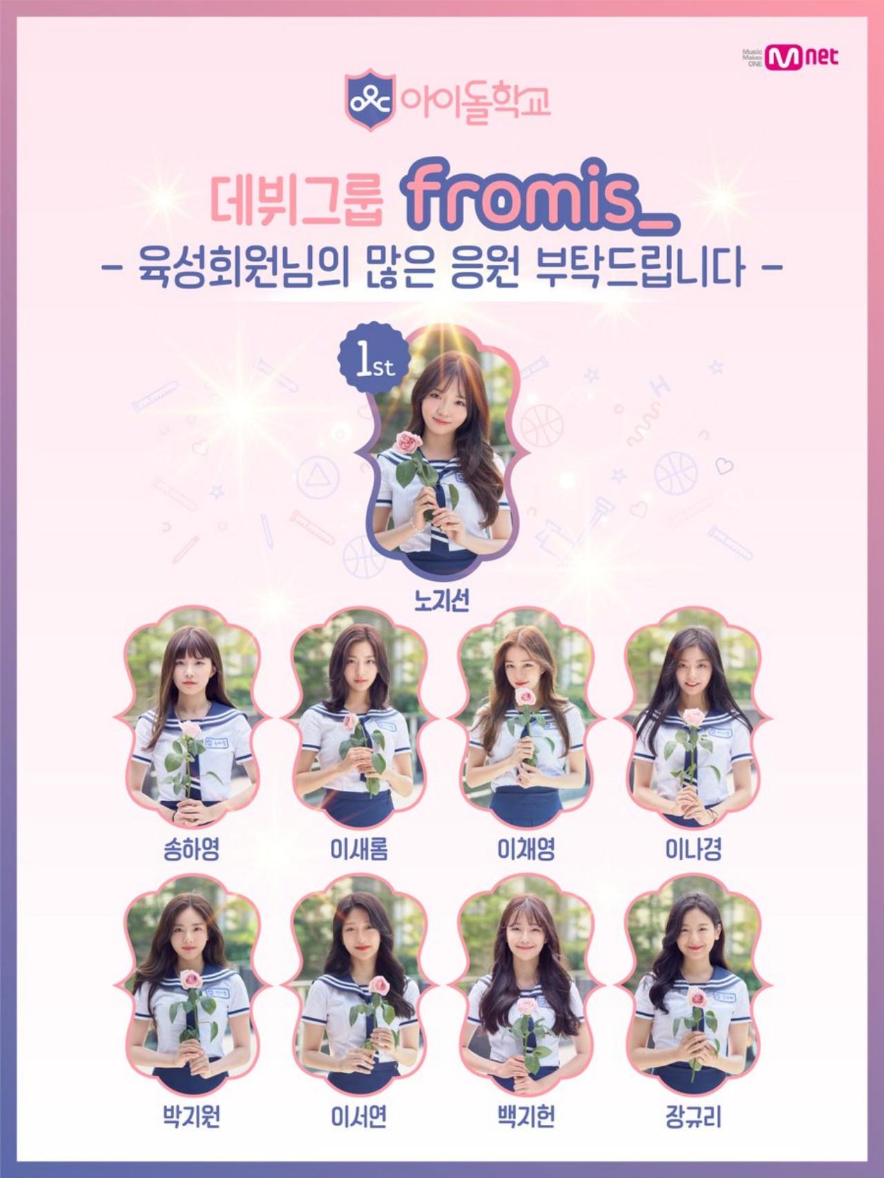 ปิดเทอมแล้ว! รายการโรงเรียนไอดอล (Idol School) ได้ 9 นักเรียนสาวไอดอลฝึกหัด มาตั้งวงเกิร์ลกรุ๊ปใหม่ พรอมมิส (fromis_) โดยมี โนจีซอน รับหน้าที่เป็นเซ็นเตอร์ของวง...