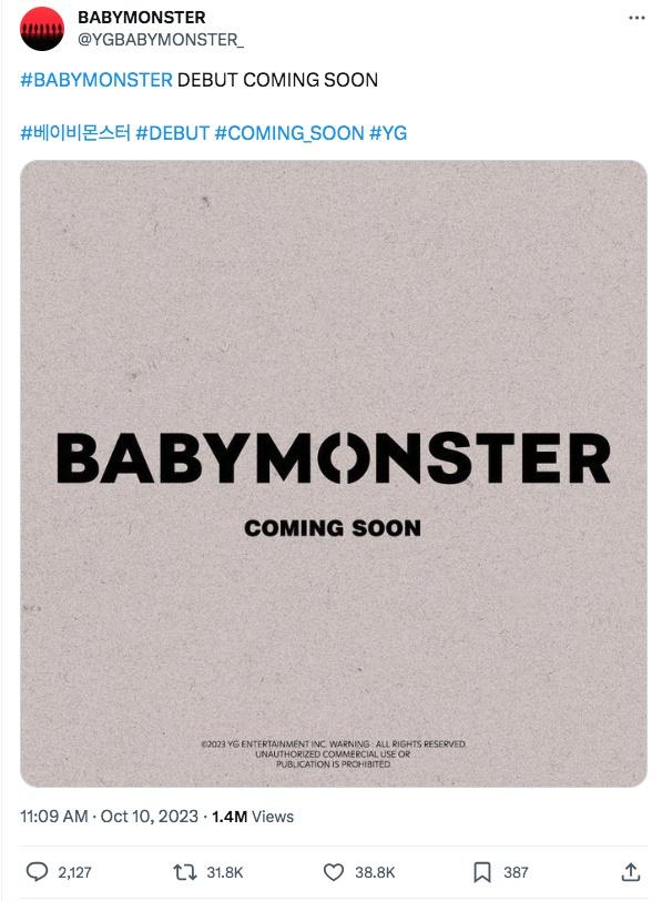 โดยสำนักข่าวเกาหลีใต้ Soompi รายงานข่าวว่า YG Entertainment ได้แชร์การอัปเดตเกี่ยวกับวันเดบิวต์สำหรับเกิร์ลกรุ๊ปวงใหม่ BABYMONSTER