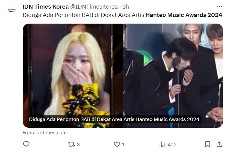 กลายเป็นประเด็นร้อนในโลกโซเชียลทันที หลังจากที่มีการจัดงานประกาศรางวัลด้านดนตรี Hanteo Music Awards 2024 ซึ่งจัดขึ้น ณ ทงแดมุนดีไซน์พลาซ่า (Dongdaemun Design Plaza : DDP) จัดโดย Hanteo Chart ซึ่งเป็นบริการชาร์ตเพลง K-POP ระดับโลก เมื่อวันที่ 17-18 ก.พ. 2567 ที่ผ่านมา โดยมีทั้งศิลปินไอดอลมาร่วมงานมากมาย อาทิ NCT DREAM, AESPA, ATEEZ, ZEROBASEONE, KISS OF LIFE พร้อมทั้งเปิดให้แฟนๆ ศิลปินมาเชียร์ถึงขอบเวที