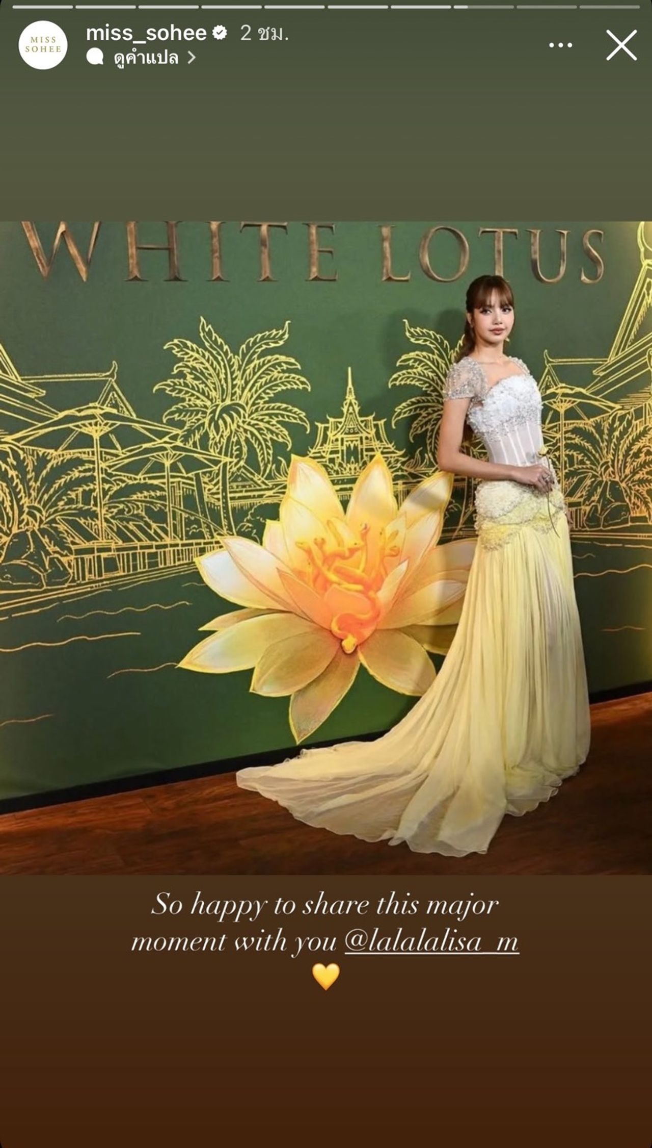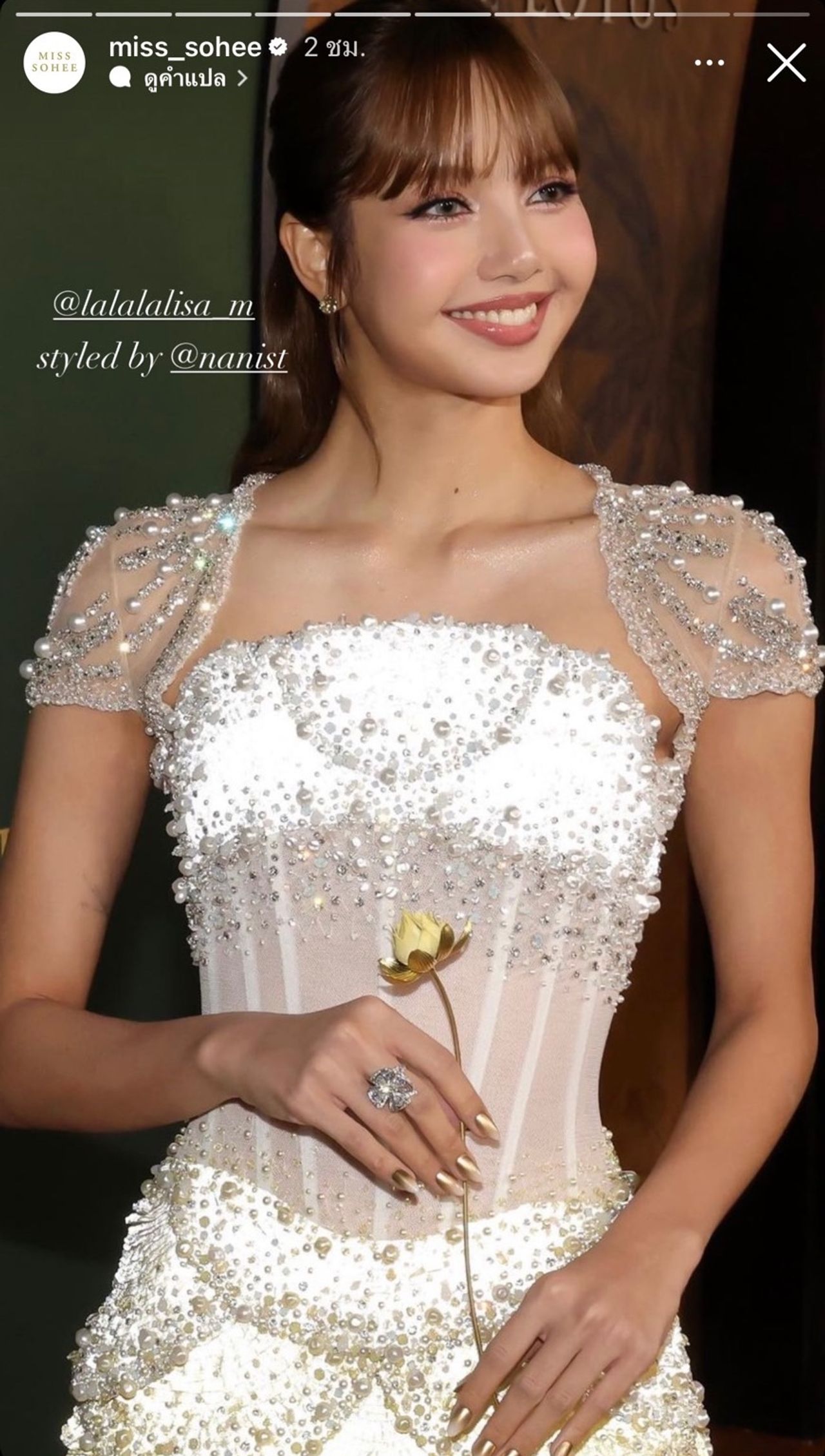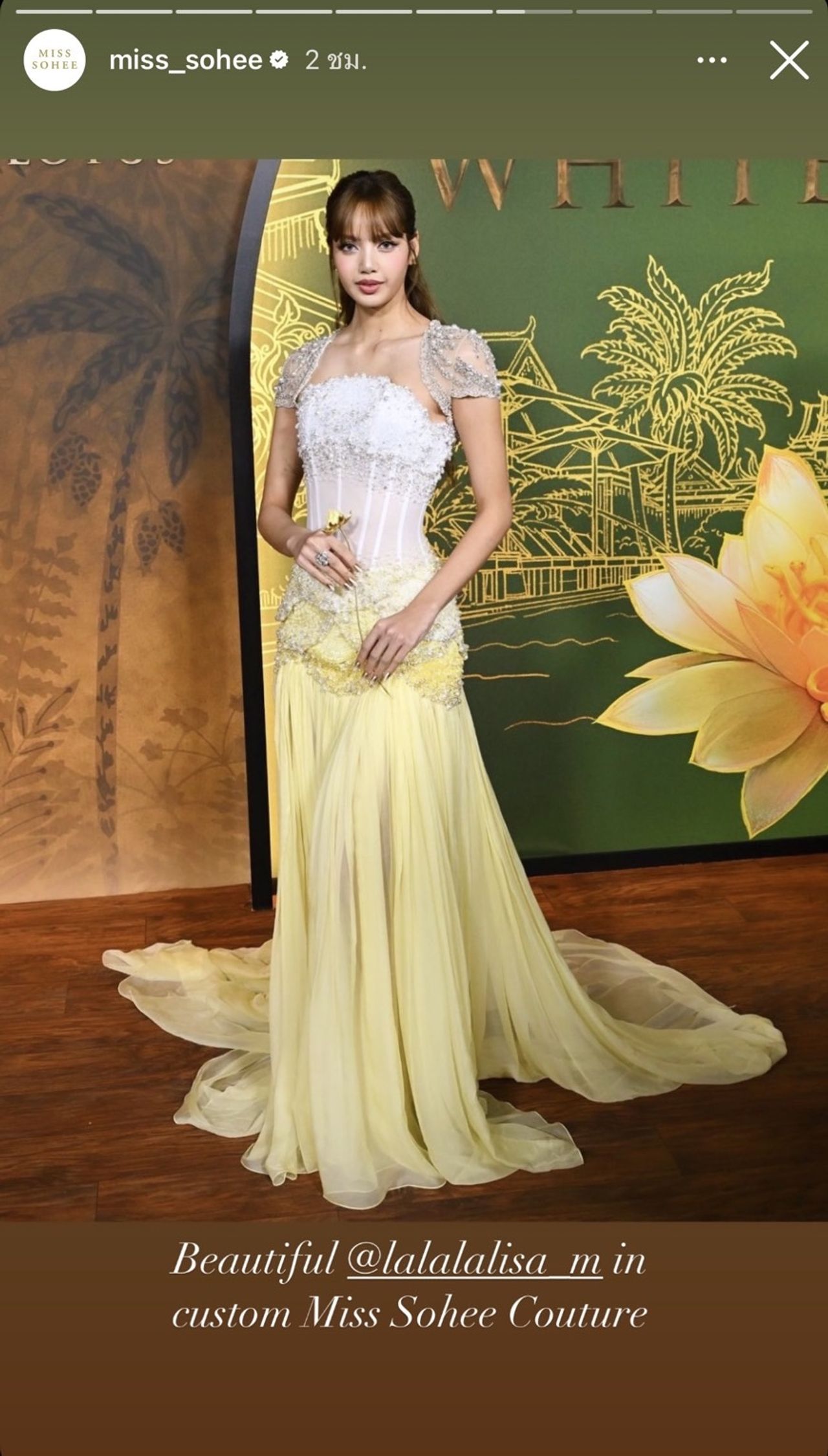ซึ่ง ลิซ่า ปรากฏตัวในชุดสั่งตัดจากแบรนด์ Miss Sohee ซึ่งอิงมาจากคอลเล็กชัน Spring 2024 ที่ชุดเดิมเป็นสีฟ้า มีผ้าชีฟองแขนยาว แต่ในชุดที่ลิซ่าสวมใส่เปลี่ยนเป็นชุดเสื้อแขนสั้น ท่อนบนเป็นคอร์เซตสีขาวปักมุกเหมือนกลีบดอกไม้ ซึ่งคาดว่าน่าจะสื่อถึงชื่อ “มุก” ที่เป็นตัวละครที่ลิซ่าเล่น ท่อนล่างเป็นกระโปรงสีเหลือง ถือดอกบัวพับกลีบสีทองตามชื่อซีรีส์ ซึ่งดอกบัวนี้เป็นฝีมือออกแบบจากแบรนด์ไทยอย่าง SARRAN