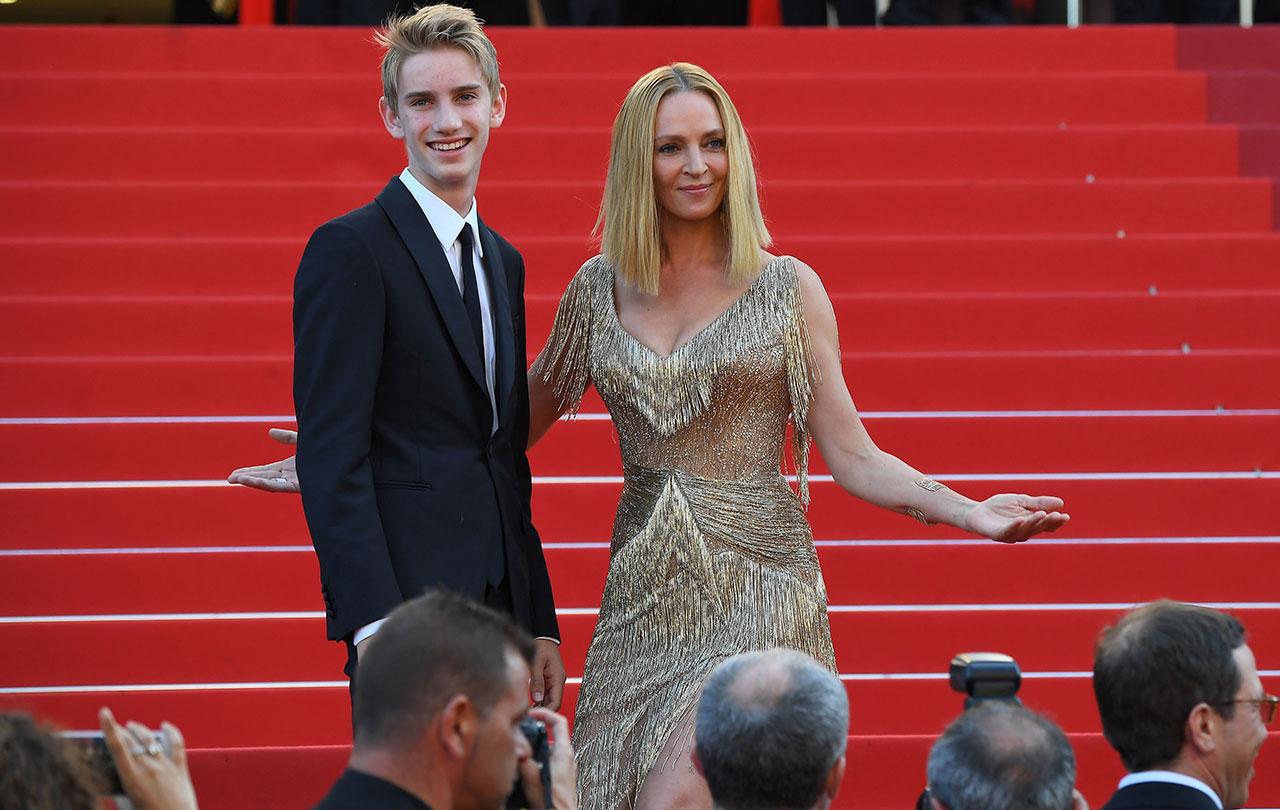 ในงานพิธีปิดเทศกาลหนังเมืองคานส์ ฝรั่งเศส อูมาสวยตะลึงเซ็กซี่มีระดับอีกแล้วในชุดของ Atelier Versace ลุคนี้กระหน่ำๆ ไลค์ให้เลย นางไม่ได้มาคนเดียว เพราะพกลูกชาย Levon Roan Thurman Hawke วัยแตกเนื้อหนุ่มเปรี๊ยะๆ มาด้วย ดูดีมีออร่าสตาร์ระดับโลก ถอดแบบจากแม่อูมาและพ่ออีธาน ฮอว์ค มาเลยนะเนี่ย! ต้องจับตารอดูต่อไปว่า จะพุ่งไปเป็นพระเอกฮอตฮิตเหมือนคุณแม่อูมาได้หรือไม่.