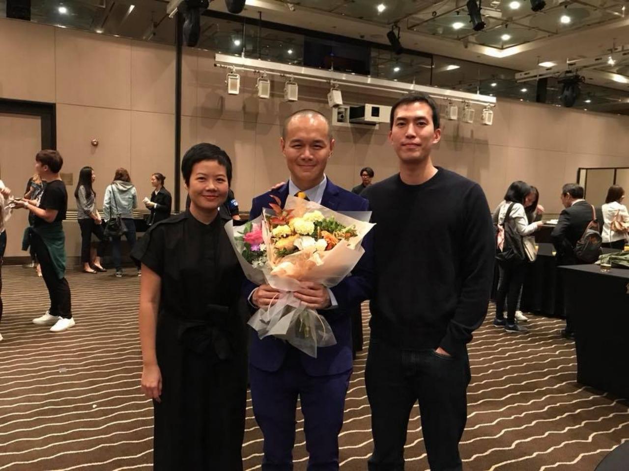 (ซ้ายมือ) ใหม่ อโนชา (คนกลาง) เรย์มอนด์ พัฒนวีรางกูล โปรดิวเซอร์สมุยซอง (ขวาสุด) จอช คิม