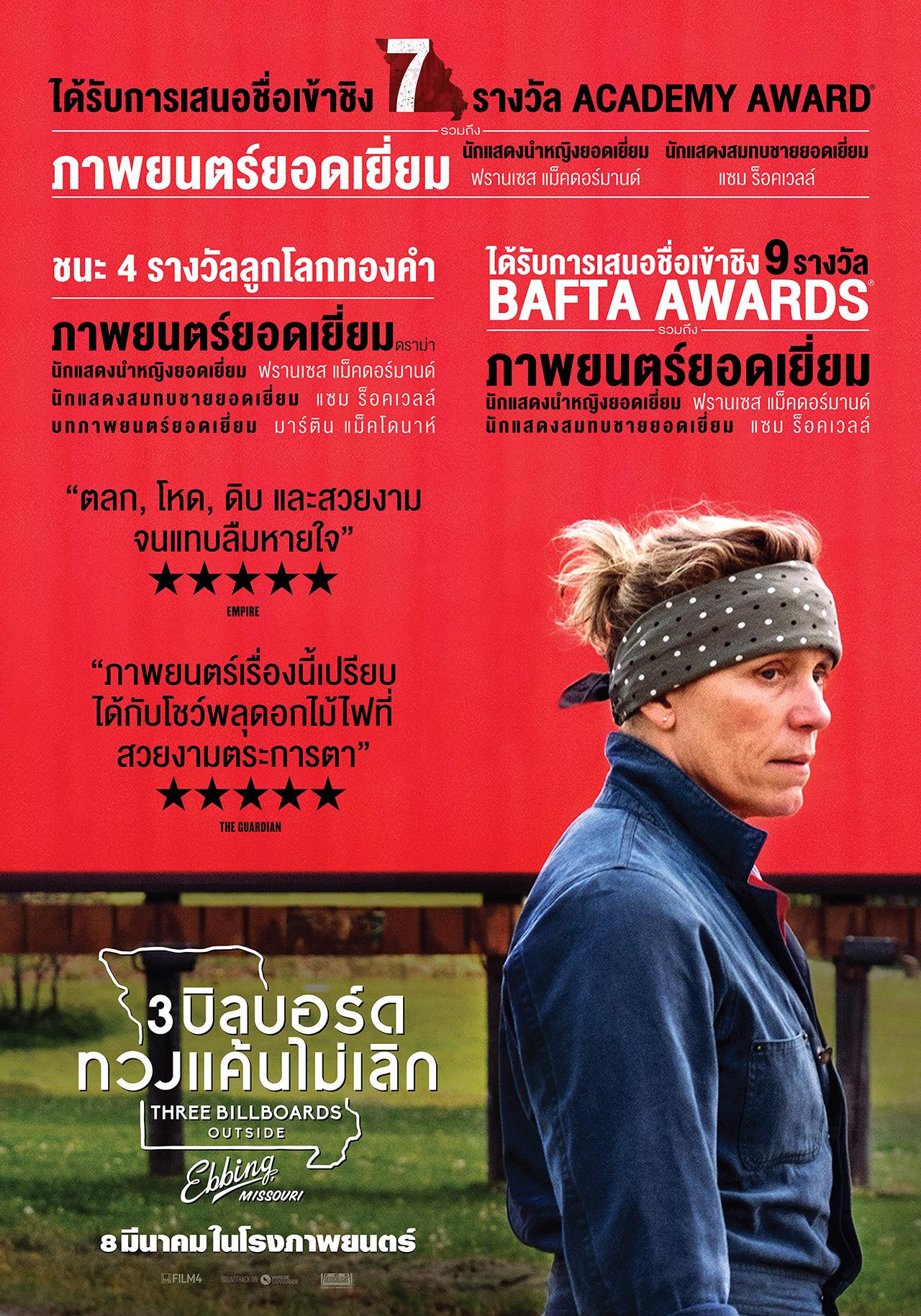 ต้องบอกว่าเหนือความคาดหมายมากสำหรับ “Three Billboards Outside Ebbing, Missouri” หรือชื่อไทย “3 บิลบอร์ด ทวงแค้นไม่เลิก” เสียงลือเสียงเล่าอ้างถึงความดีงาม (และความน่าสะพรึง) ของหนังเรื่องนี้ไม่ได้เกินจริงเลย...
