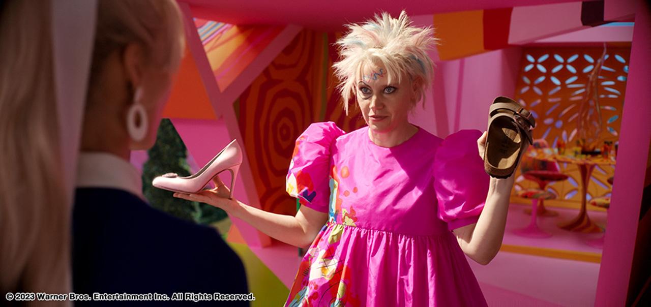 เราชอบฉากที่ให้บาร์บี้ (มาร์โก้) เลือกรองเท้าสองแบบเป็นพิเศษ (เดาว่ารองเท้าแตะยี่ห้อนั้น รุ่นนั้น น่าจะขายดีมากๆ หลังจากนี้) เพราะทำให้เห็นภาพชัดและเริ่มจะมั่นใจในฉากนั้นเองว่าหนังจะพาเราไปในทิศทางไหน คือไม่ใช่แค่พาบาร์บี้ไปสู่โลกแห่งความเป็นจริงเท่านั้น แต่ต้องทำให้ “Barbie” ตามยุคสมัยทัน และอยู่ในโลกนี้ได้อย่างมีความสุขเพราะมองเห็นคุณค่าที่แท้จริงของตัวเอง