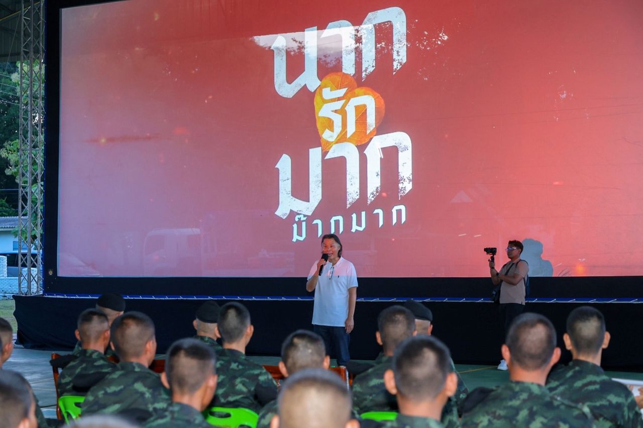 ล่าสุดเมื่อวันจันทร์ ที่ 11 สิงหาคม 2568 ที่ผ่านมา บริษัท แบล็ค ดรากอน เอ็นเตอร์เทนเม้นท์ จำกัด นำโดย คุณพรชัย ว่องศรีอุดมพร กรรมการผู้อำนวยการฝ่ายปฏิบัติการ ได้จัดกิจกรรมส่งมอบความสุขจากแนวหลังสู่แนวหน้านำภาพยนตร์ให้ทหารได้ชมฟรี โดยประสานกับกรมกิจการพลเรือนทหารนำภาพยนตร์ “นากรักมาก ม๊ากมาก” ไปฉาย ณ มณฑลทหารบกที่ 25 (ค่ายวีรวัฒน์โยธิน) จ.สุรินทร์ ค่ายทหารที่เป็นที่พักผ่อนและฝึกซ้อมของทหารแนวหน้าให้ทหารทั้งหลายได้คลายเครียดรับชมภาพยนตร์เป็นการสร้างความสุขส่งมอบกำลังใจ หลังจากเหตุการณ์เริ่มคลี่คลายลง ภายในงานได้รับเกียรติจาก พลตรี ชยพณัฐ วิริรัตน์ รองเจ้ากรมกิจการพลเรือนทหาร กองทัพไทย, นาวาเอก ภูริวัฒ มนสิชาวรกุล ผู้อำนวยการกองบรรเทาสาธารณภัย สำนักปฏิบัติการกิจการพลเรือน กรมกิจการพลเรือนทหาร และ พลตรี ไชยนคร กิจคณะ ผู้บัญชาการ มทบ.25 มาร่วมเป็นประธานเปิดงานอย่างเป็นกันเองและอบอุ่น พร้อมกับคลิปวิดีโอส่งตรงจาก “หม่ำ จ๊กมก” โปรดิวเซอร์หนังเรื่องนี้ได้ส่งคลิปมาให้กำลังใจด้วย ซึ่งบรรยากาศการรับชมภาพยนตร์มีเสียงหัวเราะจากทหารตลอดทั้งเรื่อง ทั้งการจัดฉายหนังกลางแปลงในครั้งนี้ยังได้การสนับสนุนจาก เอนก มงคล และ กลุ่มเพื่อน SVOA ที่นำมาจัดตั้งอุปกรณ์แบบไม่คิดค่าใช้จ่ายใด ๆ ทั้งสิ้น