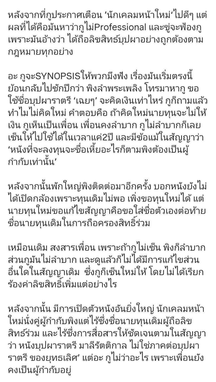 เหมือนเดิม สงสารเพื่อน เพราะถ้ากูไม่เซ็น พิงก็ลำบาก ส่วนกูมันไม่ลำบาก และดูแล้วก็ไม่ได้มีการแก้ไขส่วนอื่นใดในสัญญาเดิม ซึ่งกูก็เซ็นใหม่ให้ โดยไม่ได้เรียกร้องค่าลิขสิทธิ์เพิ่มแต่อย่างไร