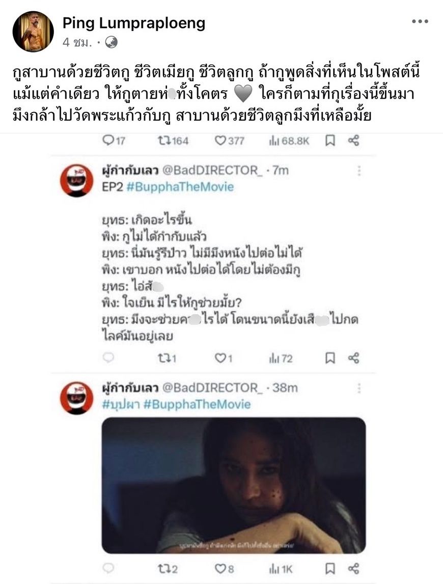 โดยในทวิตเตอร์ (X) @baddirector_ ได้โพสต์ข้อความไว้ว่า “EP2 #BupphaTheMovie