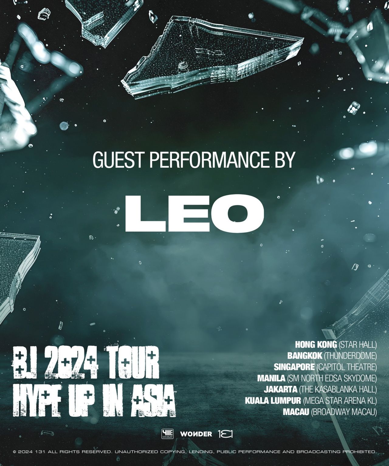 เซอร์ไพรส์ที่สอง เพิ่งประกาศสดๆ ร้อนๆ แบบควันกรุ่นในวันนี้เลยว่า “บีไอ” (B.I) จะไม่ออกทัวร์อย่างเดียวดาย แต่เขาจะพาแขกรับเชิญพิเศษไปร่วมตระเวนทั่วเอเชียกับเขา คือศิลปินชายเดี่ยวรุกกี้ของวงการเคป๊อป “ลีโอ” (LEO) #LEO #리오หนุ่มรุ่นน้องร่วมค่ายทรงดีมีอนาคต ซึ่งปัจจุบันกำลังโปรโมตผลงาน LEO 1ST EP ALBUM <COME CLOSER> ที่มีพรีรีลีสแทร็กอย่างเพลง ‘Pretty Plzzz (Feat. B.I)’ https://youtu.be/JTZS4l9-U1U รวมอยู่ในอีพีอัลบั้มดังกล่าวด้วย