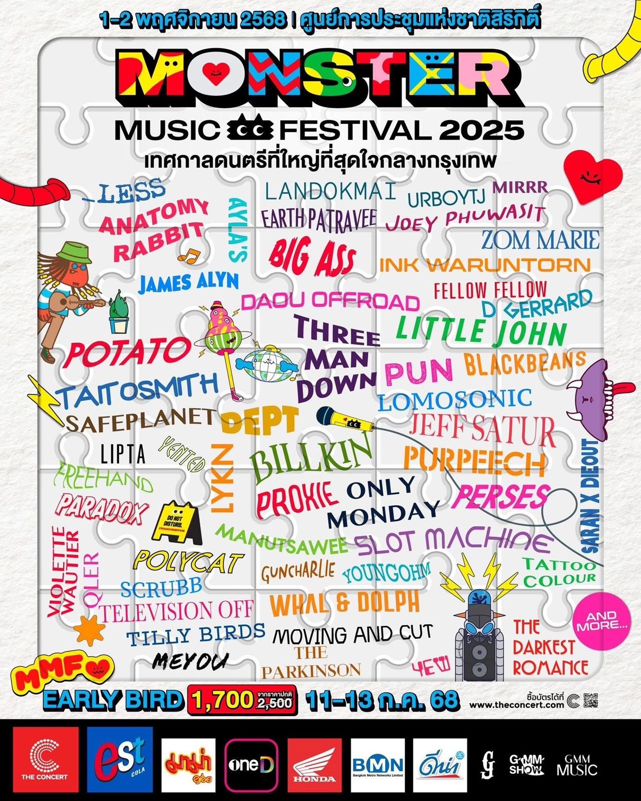 “Monster Music Festival 2025” เปิดจำหน่ายบัตร Early Bird วันที่ 11-13 กรกฎาคม 2568 ทาง THE CONCERT แล้วเตรียมตัวไปสนุกกัน 2 วันเต็ม เสาร์ที่ 1 และอาทิตย์ที่ 2 พฤศจิกายน 2568 ณ ศูนย์การประชุมแห่งชาติสิริกิติ์