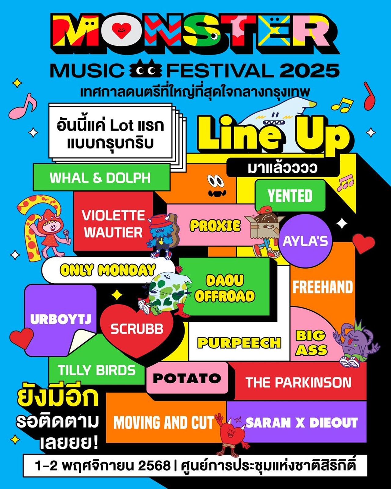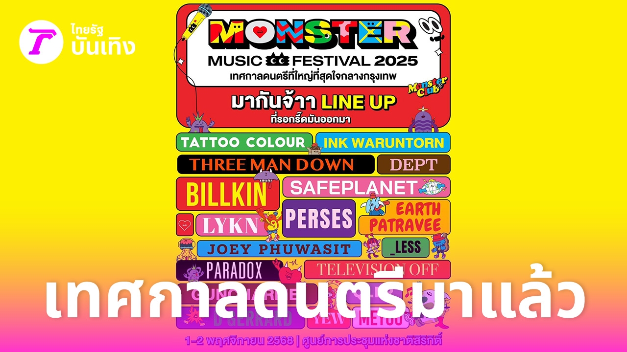 ความสนุกครั้งใหม่กำลังจะกลับมากับเทศกาลดนตรีที่ใหญ่ที่สุดใจกลางกรุงเทพ “Monster Music Festival 2025” (มอนสเตอร์ มิวสิค เฟสติวัล 2025) พร้อมระเบิดความสนุกแบบนอนสต็อปตลอด 2 วันเต็ม 6 ฮอลล์ ในวันเสาร์ที่ 1 และอาทิตย์ที่ 2 พฤศจิกายน 2568 ณ ศูนย์การประชุมแห่งชาติสิริกิติ์
